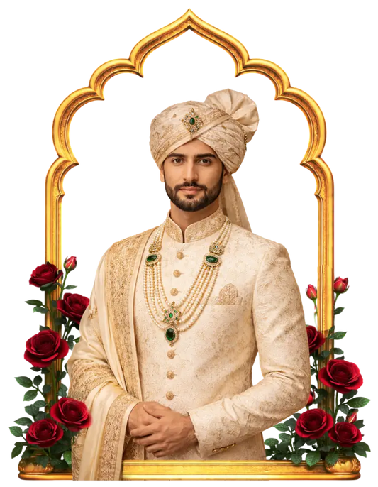 Celebrate tradition with a pair of beautifully crafted Mashallah Bands, also known as Imam Zamin. These elegant armbands are worn by the bride and groom during weddings and special ceremonies. Embroidered with the sacred words “Mashallah” (as Allah wills), they are not only symbolic...