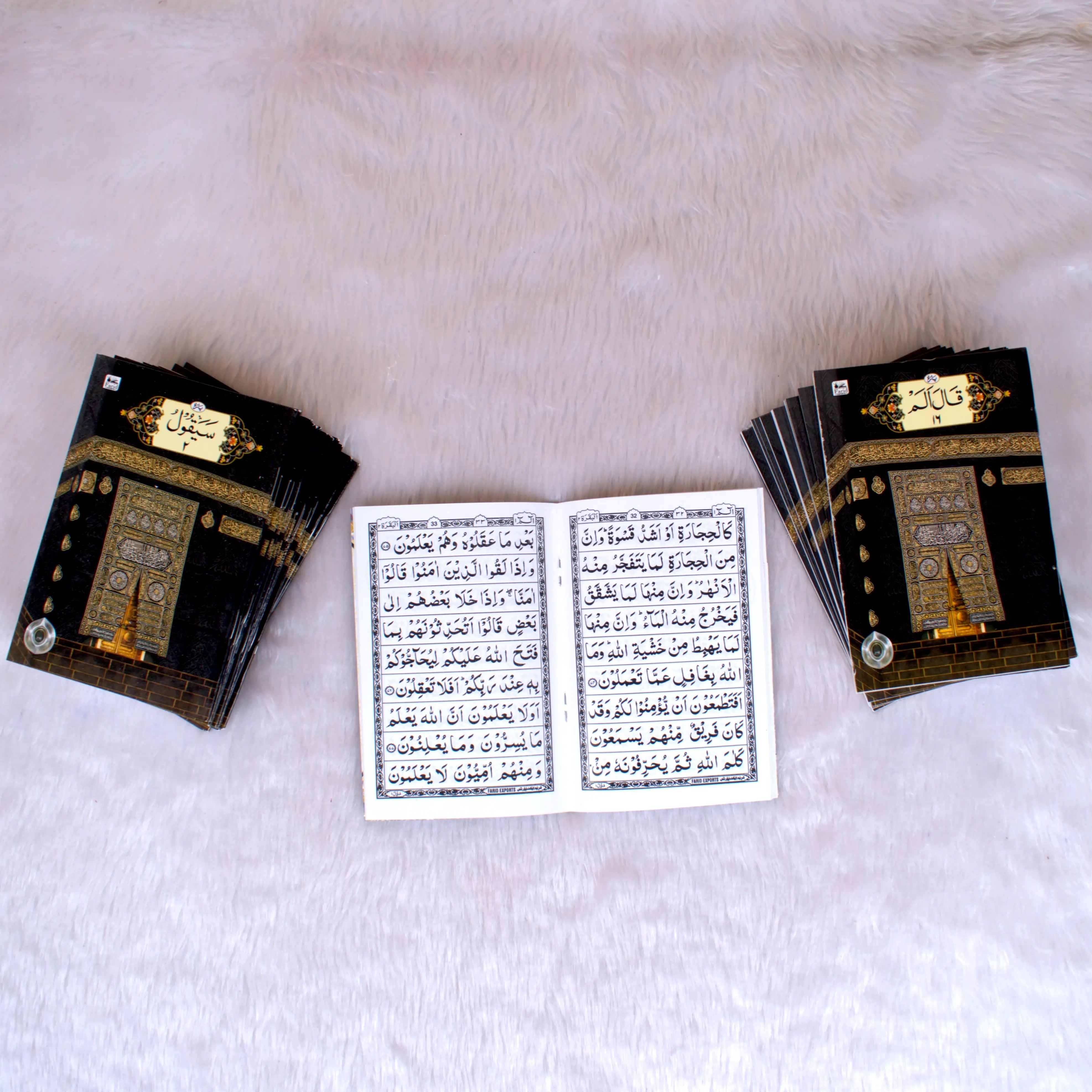 Introducing the 30 Para Quran, a beautifully crafted piece designed for Islamic gifting. This elegant Quran is a perfect blend of spiritual significance and luxurious craftsmanship, making it an ideal gift for loved ones. Inspired by the Kaaba, the black exterior, adorned with intricate gold detailing, pays homage to the holiest site in Islam, symbolizing purity and devotion. Complete Quran, enclosed within is a complete 30 Para Arabic Quran, printed with precision and clarity for a fulfilling recitation experience.