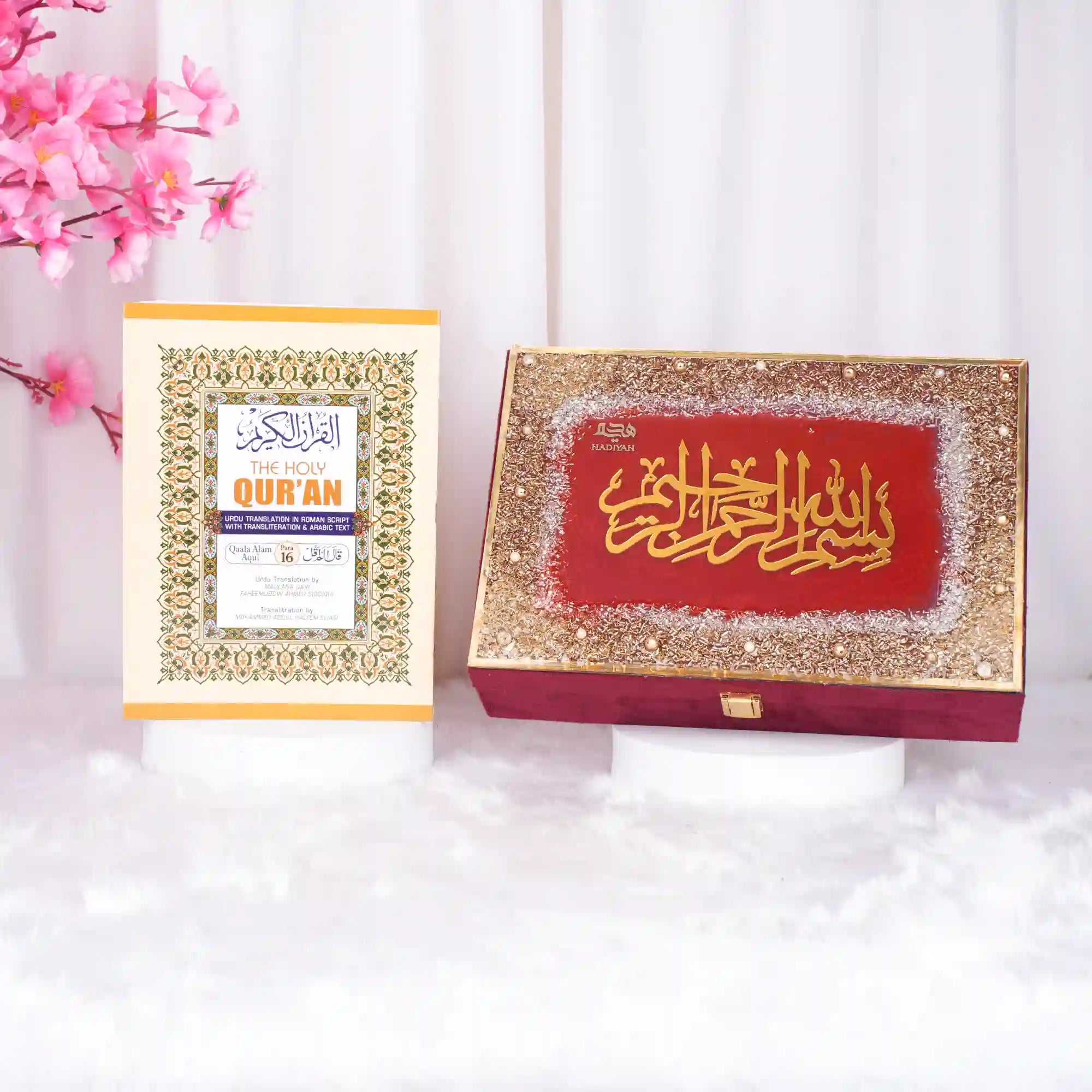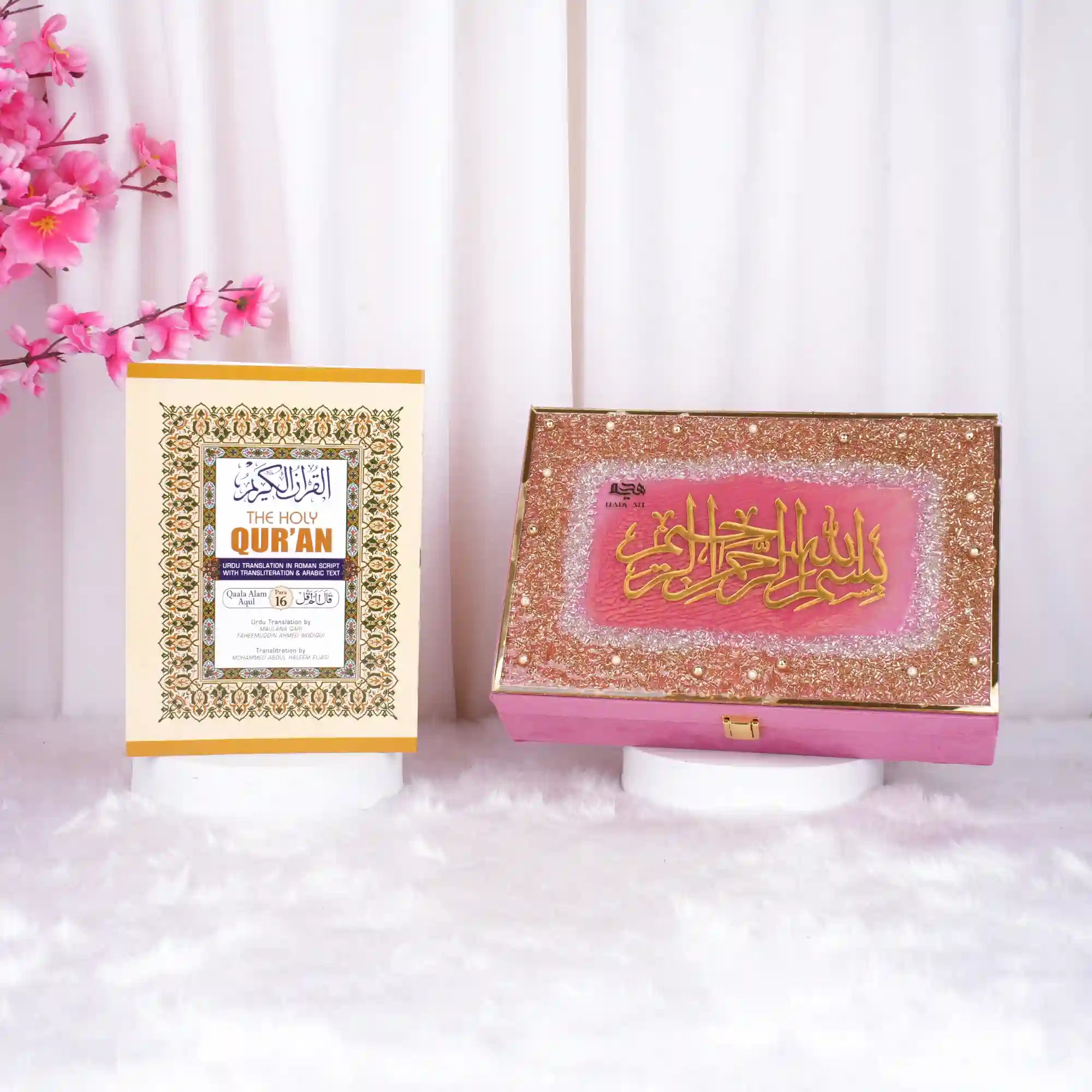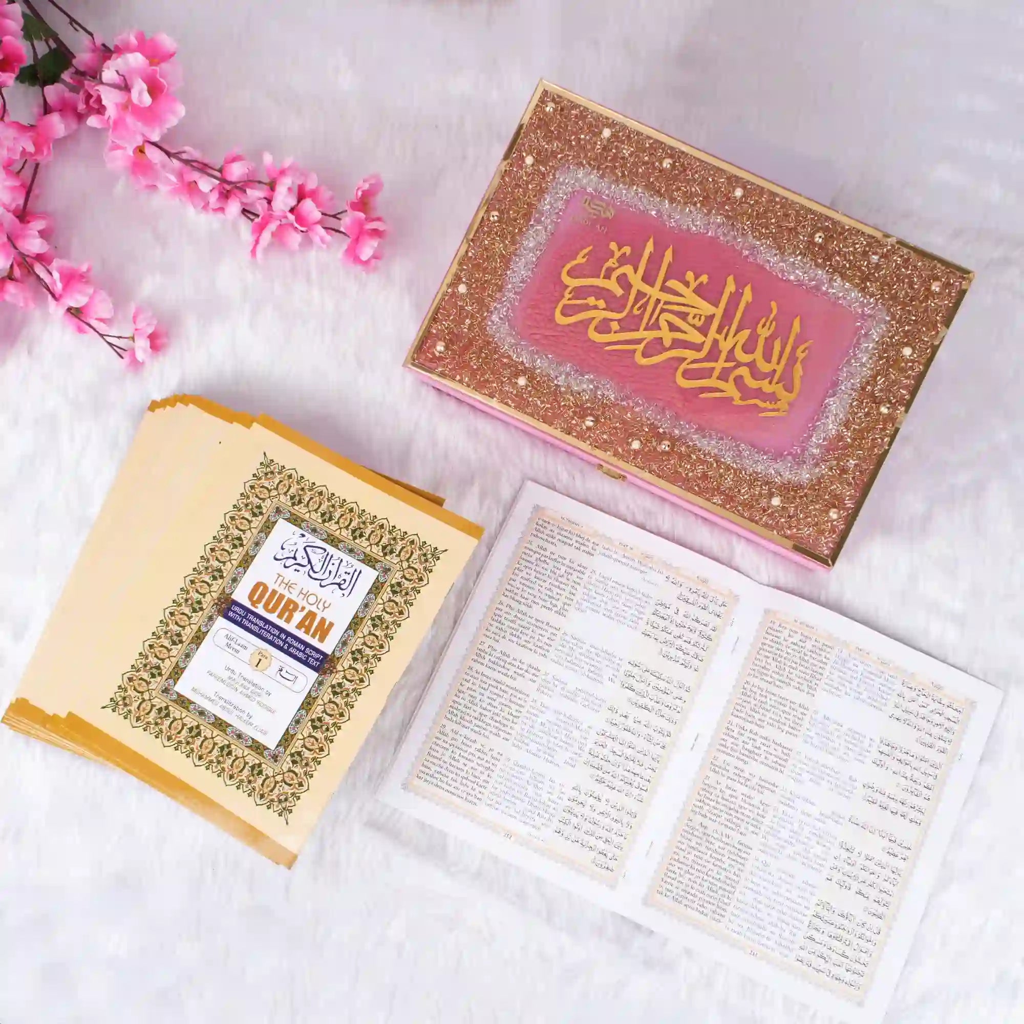 Celebrate faith and devotion with the 30 Para Quran Box Set, a beautifully curated collection designed for meaningful Islamic gifting. This complete set includes all 30 Paras (Juz) featuring Arabic text with Urdu translation, Roman transliteration, and English translation for easy understanding. Elegantly presented in a premium designer box, it is perfect for weddings, Nikkah ceremonies, housewarmings, Ramadan, and special occasions. Available in Golden, Off White, Pink, Blue, and more, this timeless gift blends spirituality with refined presentation.