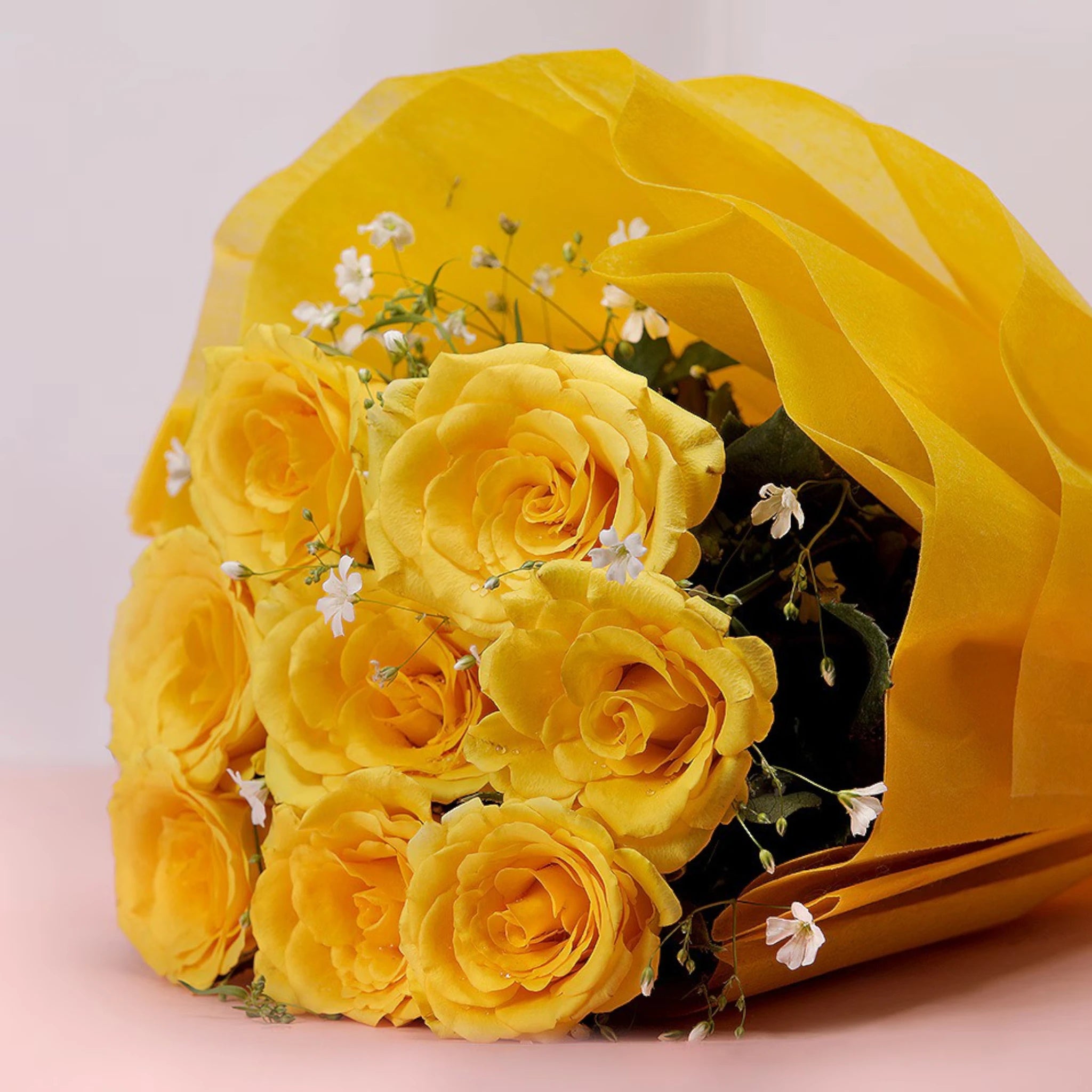 Symbolizing friendship and joy, this bunch of 8 sunny yellow roses is ideal for warm wishes, get-well-soon notes, or to lift someone’s spirits with a burst of color.
