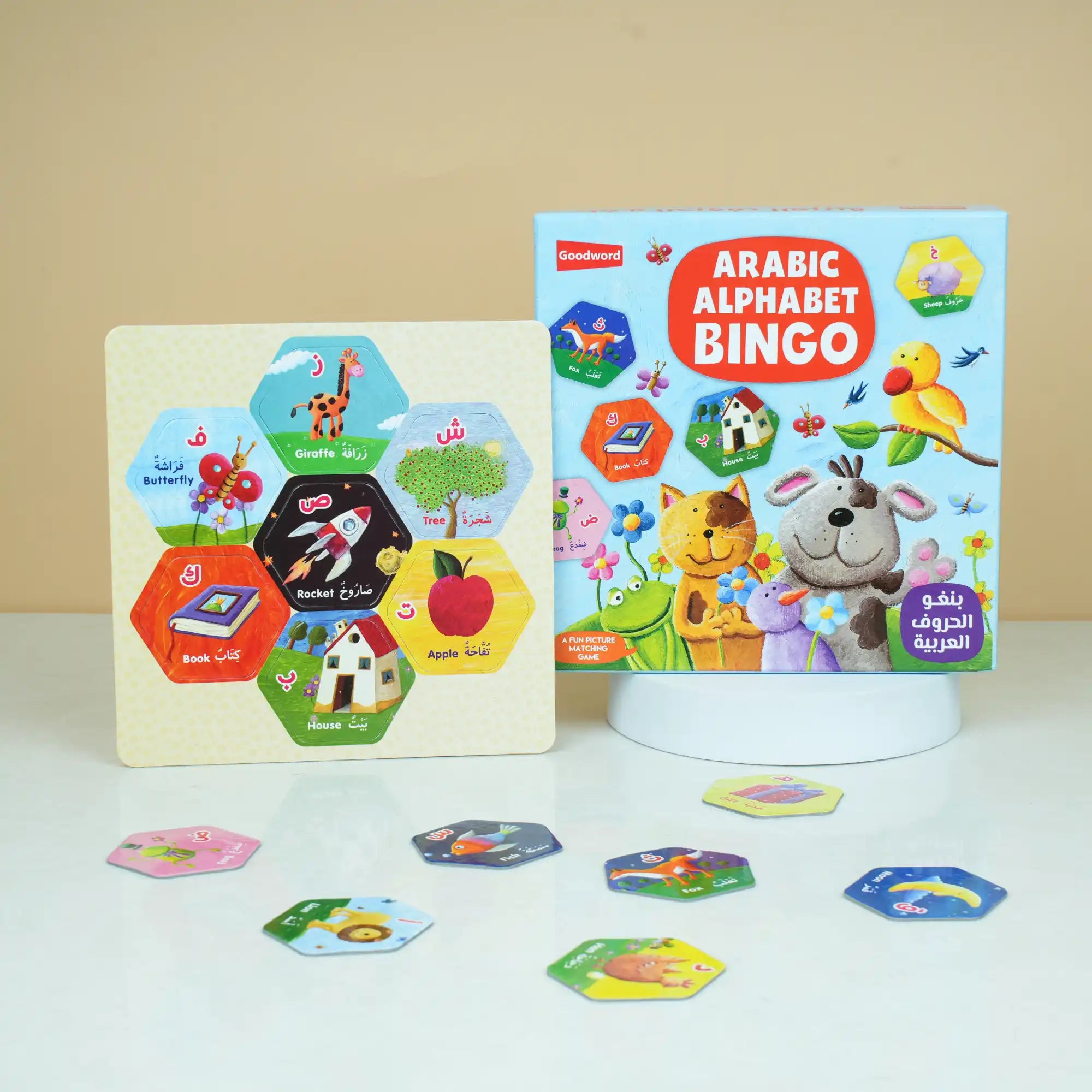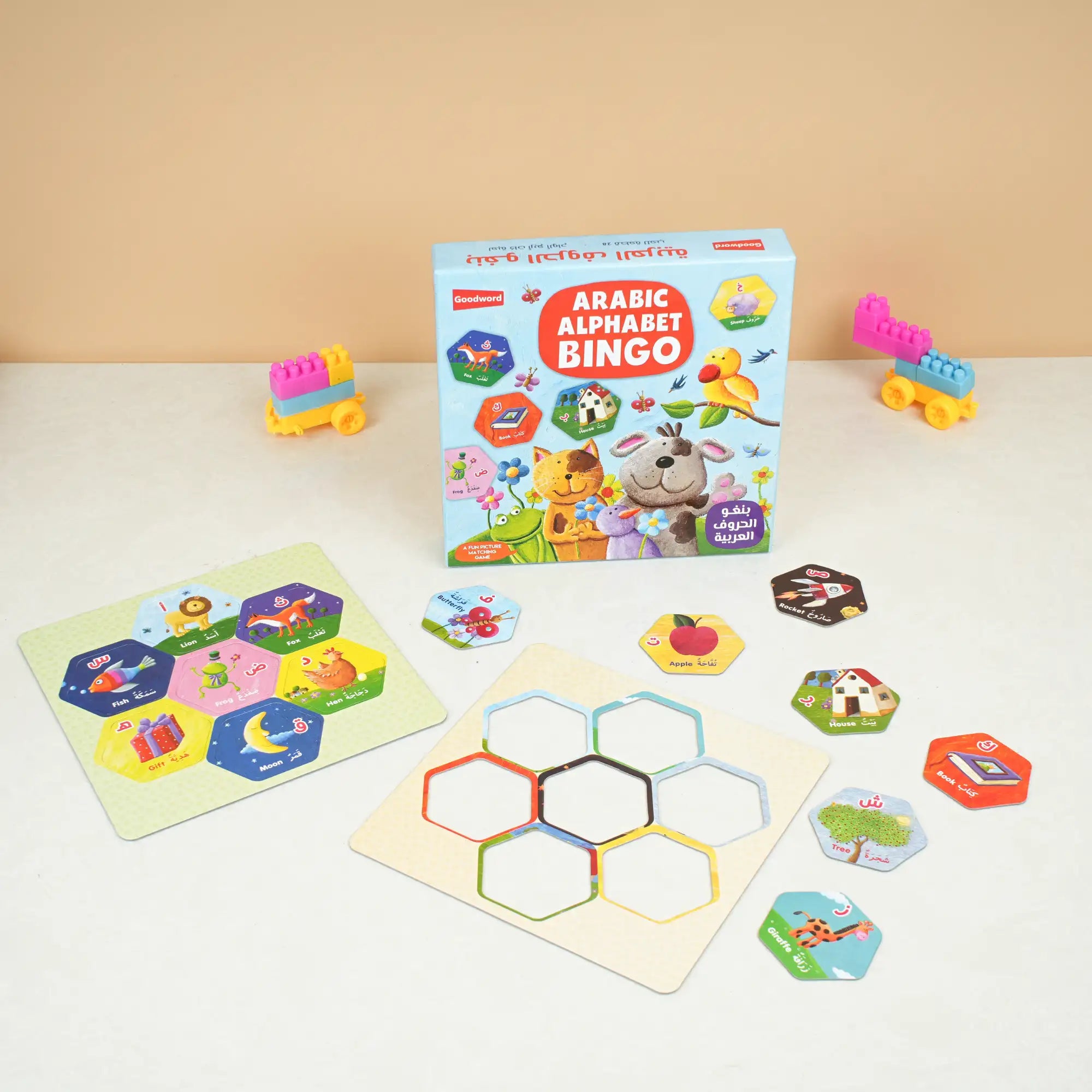 Make learning the Arabic alphabet fun and interactive with Bingo: Arabic Alphabet. This engaging game invites children to recognize letters, match pictures and develop observational skills all in a playful bingo format. With vibrant visuals and kid-friendly design, it’s perfect for home-learning, preschool settings, or being included in a gift hamper. Ideal for early learners, this game supports alphabet-familiarity, language confidence and joyful playtime.