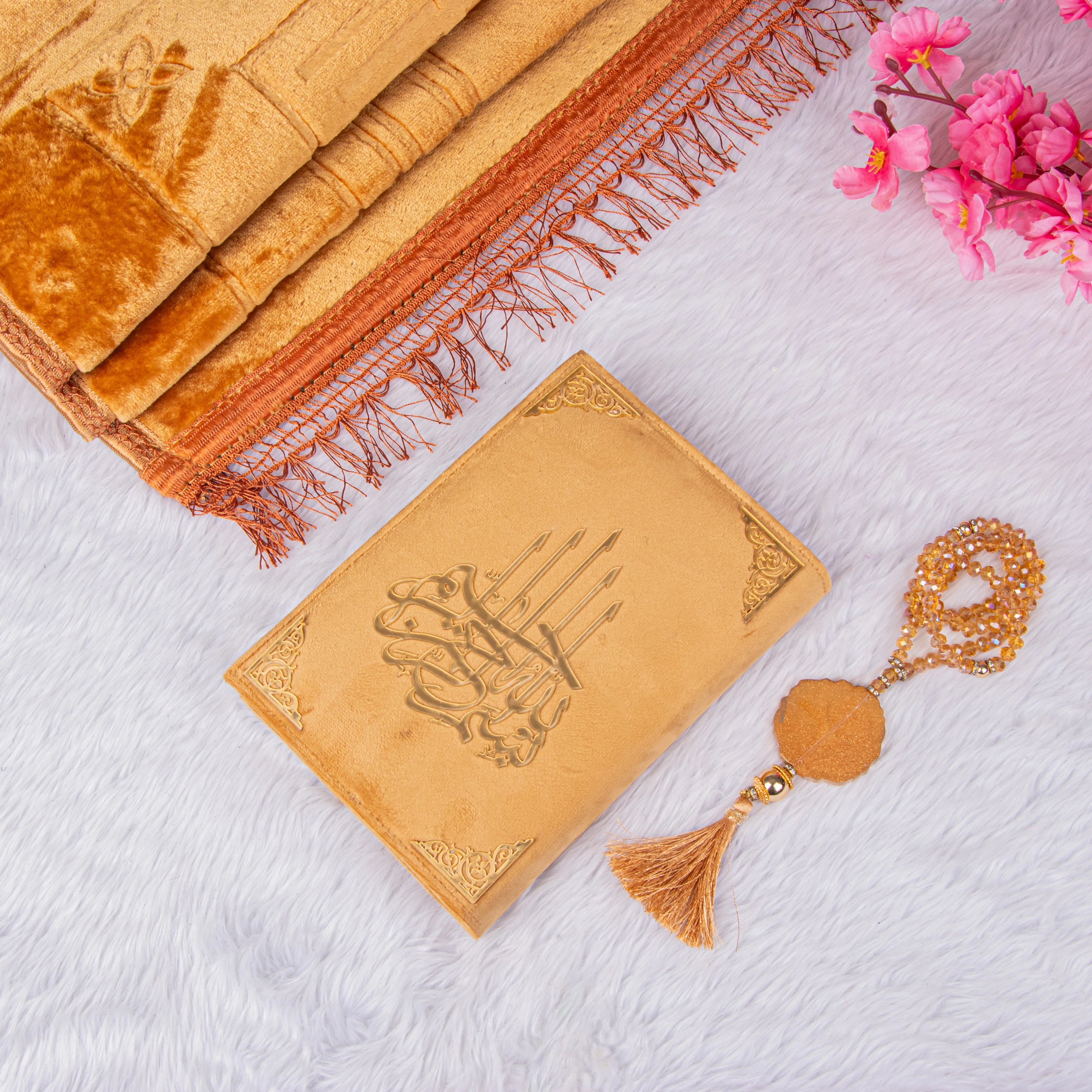 Crafted with precision and attention to detail, our Customised Golden Salah Combo Hamper offers a unique and luxurious experience for any avid prayer-goer. With its elegant golden design and customisable options, this hamper is the perfect gift for enhancing one's spiritual practice. Elevate your salah ritual with our premium combo hamper.