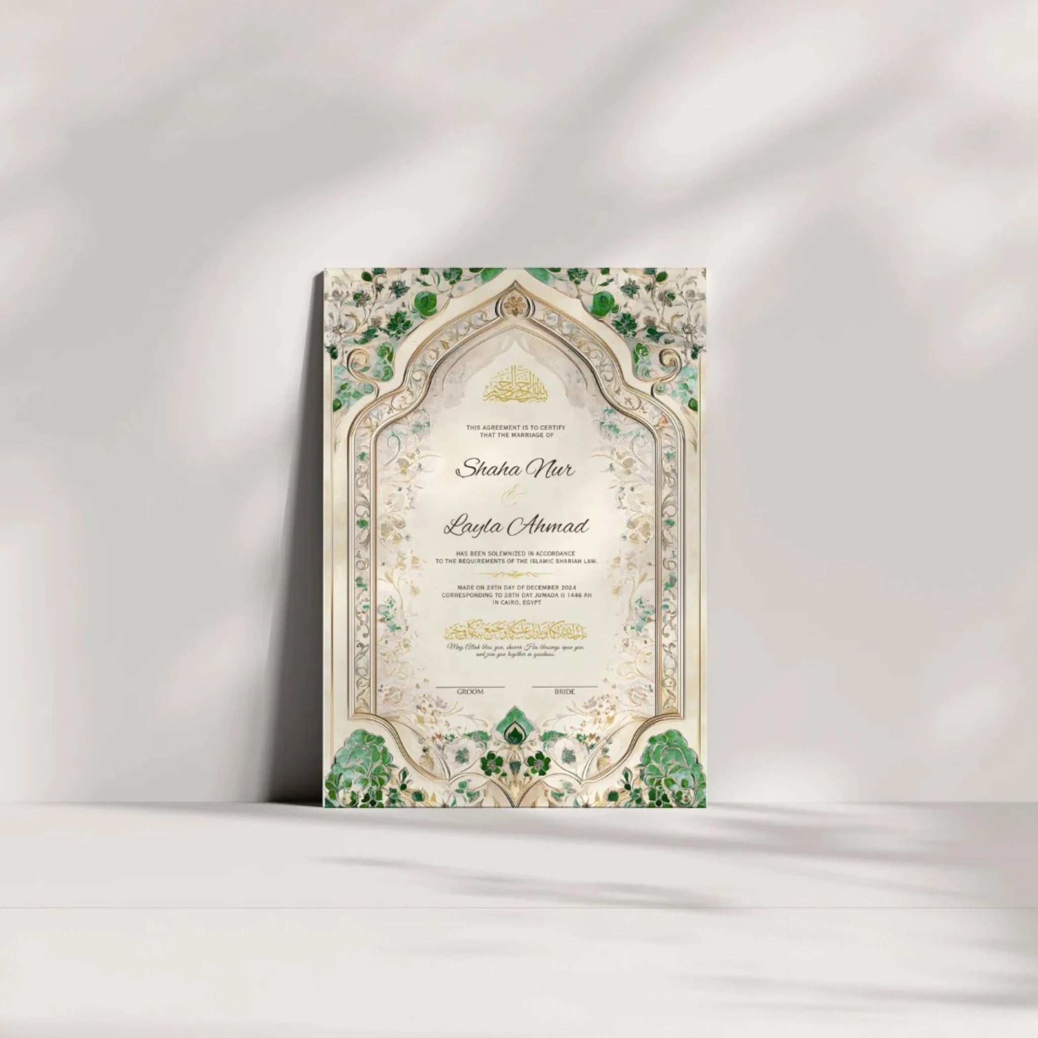 Celebrate the sacred bond of marriage with this beautifully crafted Nikah Nama Certificate encased in a premium wooden frame. A perfect Islamic wedding gift, this elegant keepsake symbolizes love, faith, and commitment.