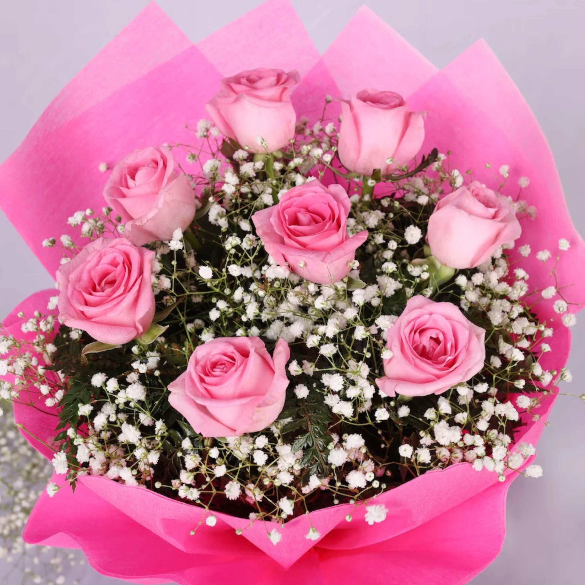 Delicate yet striking, this bouquet of exotic pink roses is ideal for expressing admiration and sweet affection. Their subtle charm makes them a thoughtful choice for romantic or appreciation gestures.