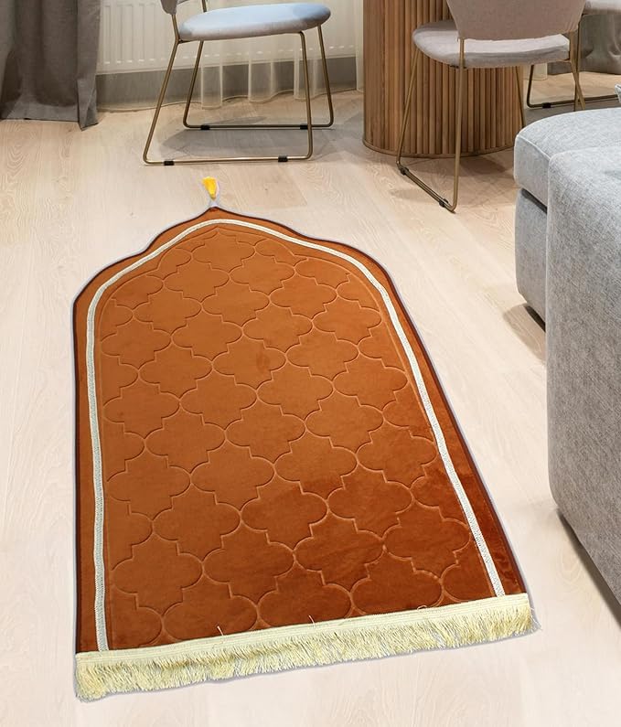 Inspired by the architectural beauty of Islamic domes, this Dome-Shaped Janamaz offers both spiritual comfort and artistic elegance. Crafted from premium, soft fabric, it provides a smooth and serene surface for your daily prayers. The intricate dome design, symbolizing connection to the divine, adds a touch of cultural richness to your prayer experience. Lightweight and durable, it’s ideal for home use for long hour prayers or travel, making it a thoughtful and meaningful gift for Islamic occasions. Perfect for those who seek both style and spirituality, this janamaz enhances the sacred act of prayer with grace and reverence.