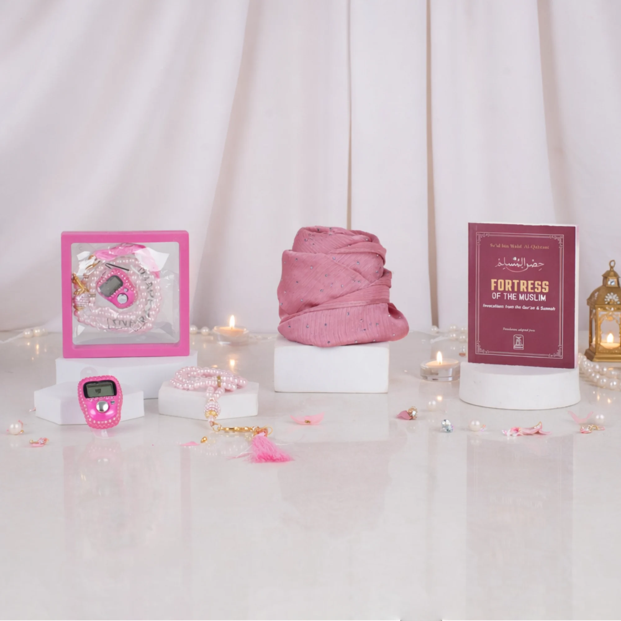 Gracefully curated for thoughtful gifting, the Graceful Hijab Set Women's Hamper brings together modest essentials in a neat and presentable set. Designed to reflect elegance and spiritual mindfulness, this hamper makes a lovely choice for Ramadan, Eid, or special occasions.