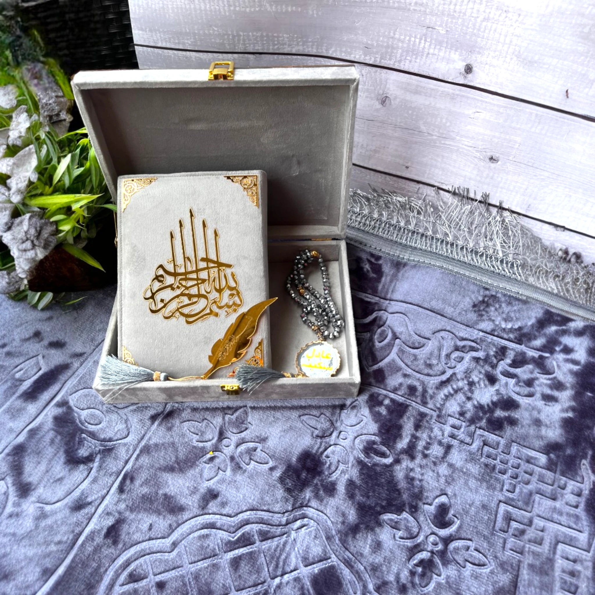 Inspire spiritual reflection and devotion with the Tilawat-e-Quran Hamper, a beautifully curated collection designed to enhance the experience of Quranic recitation. This thoughtful hamper includes a finely crafted Quran, a Tasbeeh for remembrance, and feather bookmark to mark the journey through divine verses. Ideal for gifting on Islamic occasions like Eid, Ramadan, or Nikah, the Tilawat-e-Quran Hamper is a symbol of faith, reverence, and spiritual connection. Presented in elegant, premium packaging, this meaningful gift offers blessings, guidance, and tranquility to the recipient’s home.
