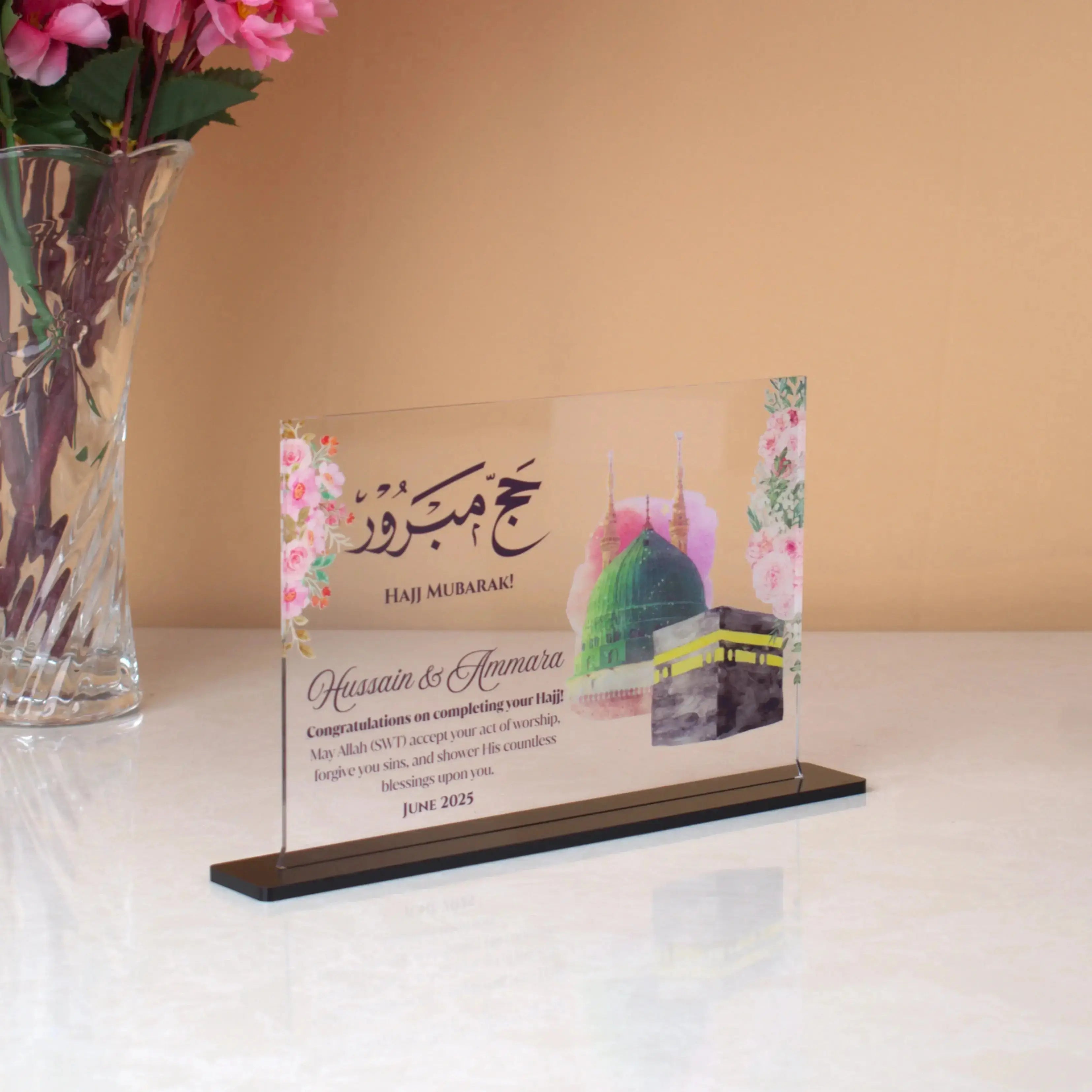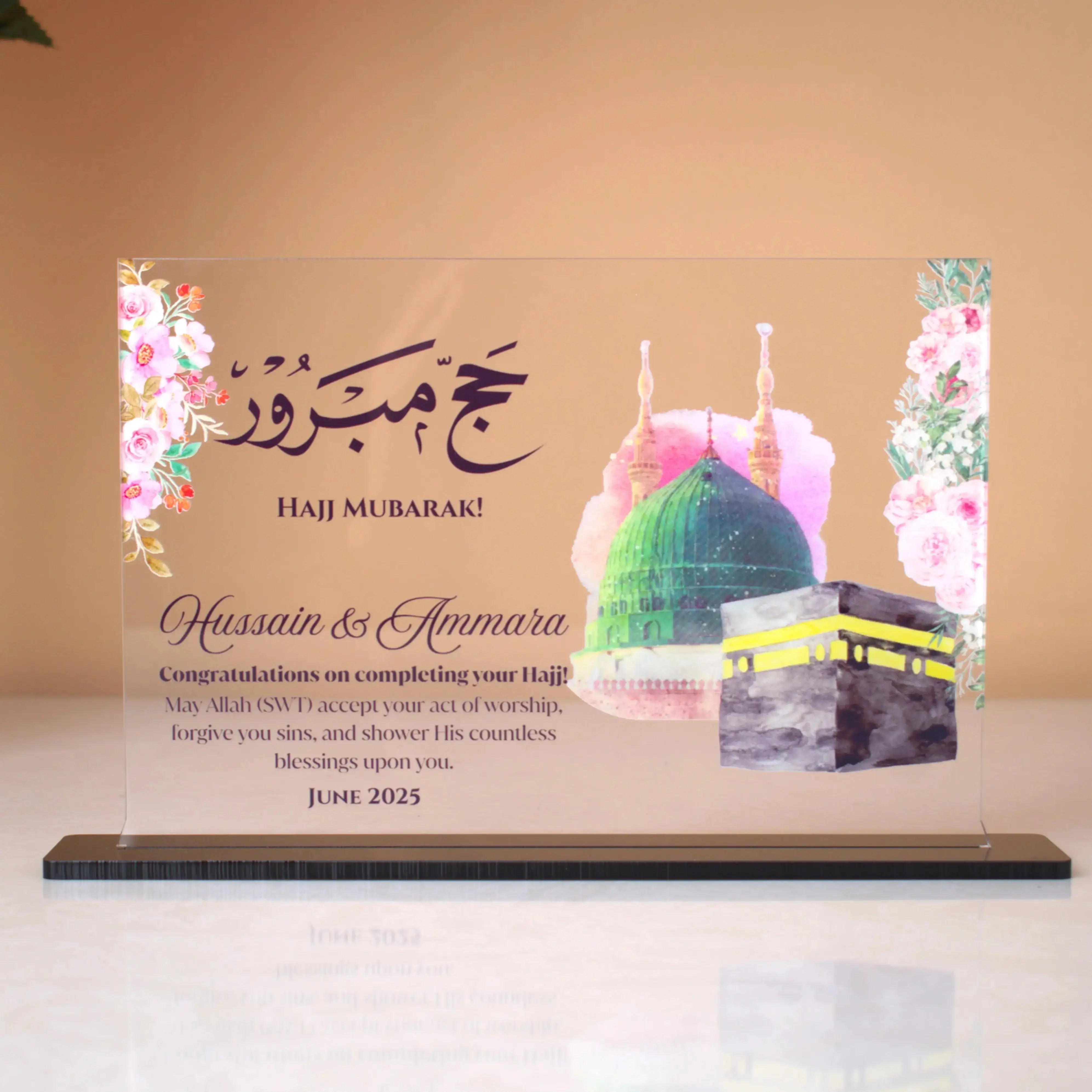 Commemorate the spiritual journey of Hajj or Umrah with our Hajj/Umrah Mubarak Acrylic Plaques, featuring stunning Kaaba Sharif designs. Crafted from high-quality acrylic: