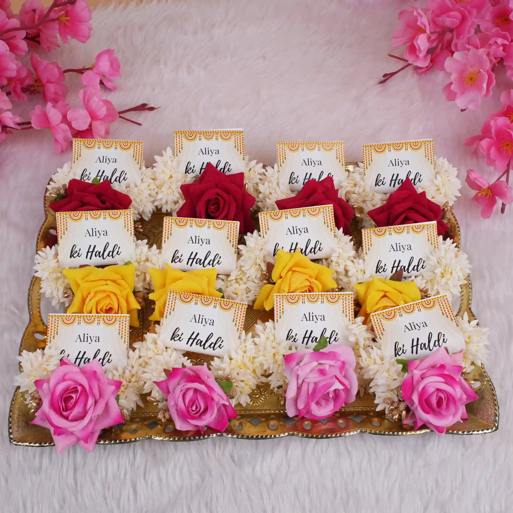 Crafted with premium artificial blooms in vibrant Haldi tones, each gajra is soft, lightweight, and comfortable to wear throughout the ceremony. They instantly elevate pictures, add uniformity to your event theme, and make guests feel cherished. Whether you’re planning a Haldi, Mehendi, bridal shower, or pre-wedding ritual, these gajra favors are a delightful keepsake your guests will love to take home.