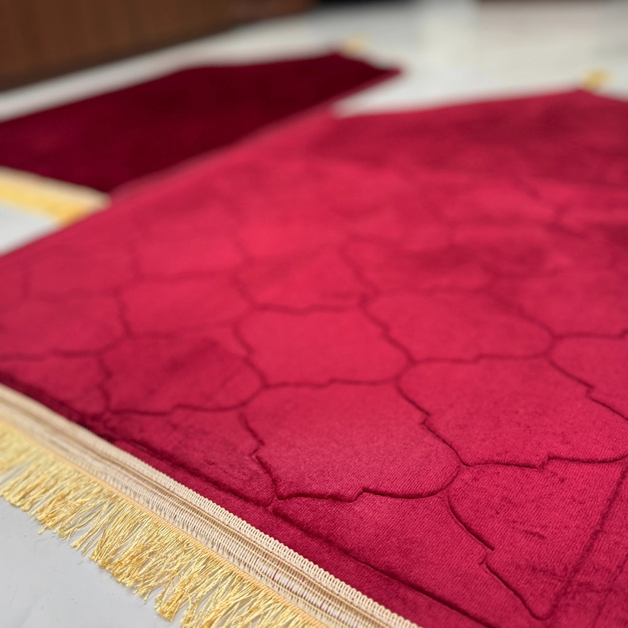 Celebrate togetherness in devotion with this beautifully crafted Couple Janamaz Set, perfect for gifting on Islamic occasions, weddings, or as a thoughtful gesture for loved ones. Each prayer mat in this set is designed with intricate patterns symbolizing faith and unity, offering comfort and elegance during prayers. Premium Quality, made from soft, durable fabric for a serene prayer experience. Gift-Ready, comes in a beautifully wrapped package, making it a meaningful Islamic gift.