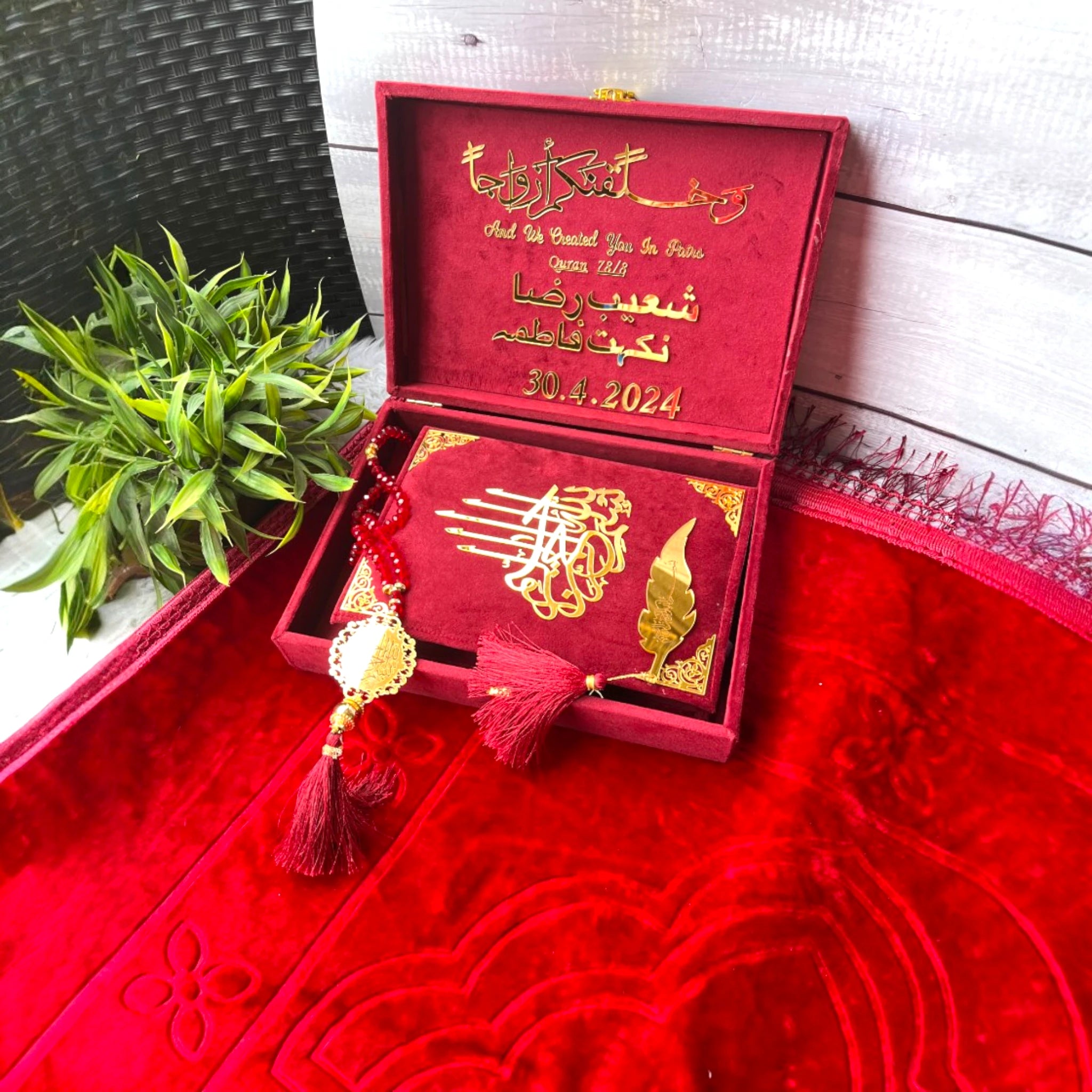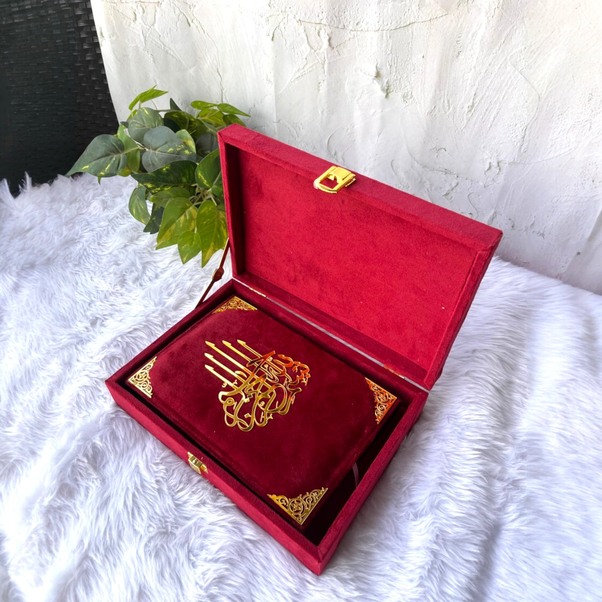 Inspire spiritual reflection and devotion with the Tilawat-e-Quran Hamper, a beautifully curated collection designed to enhance the experience of Quranic recitation. This thoughtful hamper includes a finely crafted Quran, a Tasbeeh for remembrance, and feather bookmark to mark the journey through divine verses. Ideal for gifting on Islamic occasions like Eid, Ramadan, or Nikah, the Tilawat-e-Quran Hamper is a symbol of faith, reverence, and spiritual connection. Presented in elegant, premium packaging, this meaningful gift offers blessings, guidance, and tranquility to the recipient’s home.