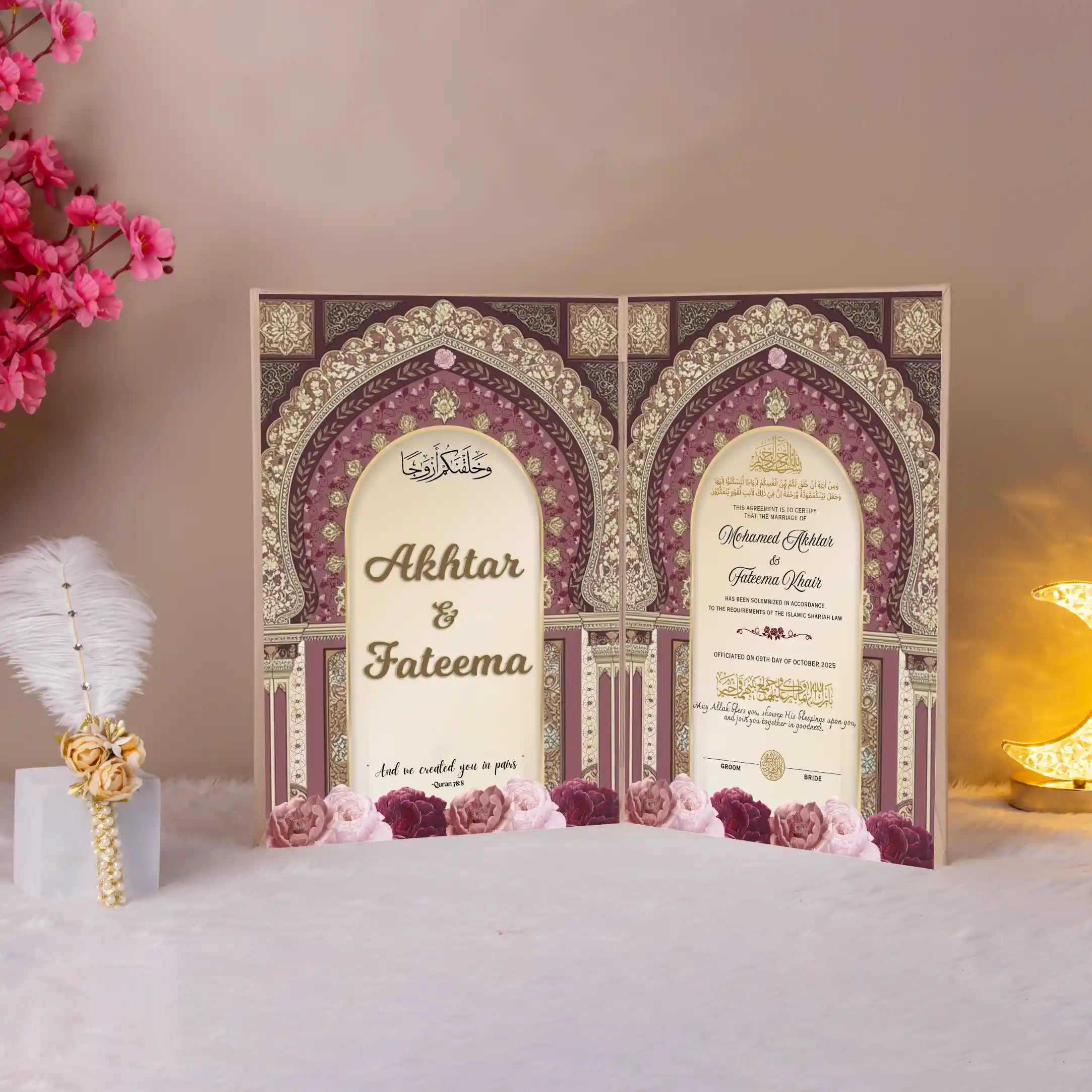 Ideal as an Islamic wedding gift, this Nikah Nama embodies grandeur while holding the sanctity of Nikah at its core. It serves as an heirloom-worthy treasure that can be cherished and passed down for generations.