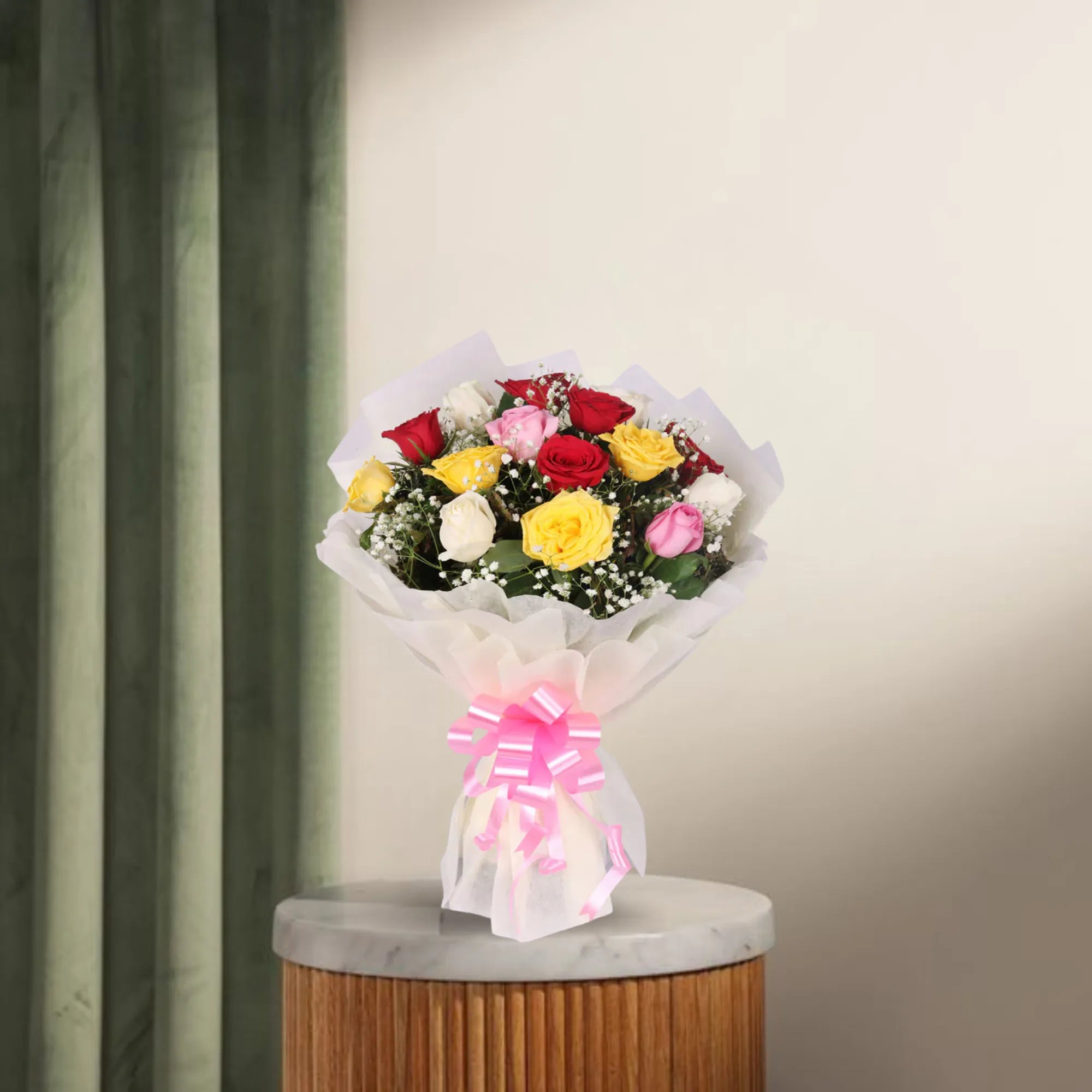 A contemporary bouquet designed for the modern lover. With a stylish arrangement of premium roses and fresh greens, this bouquet is both chic and charming — the perfect gift for an unforgettable impression.