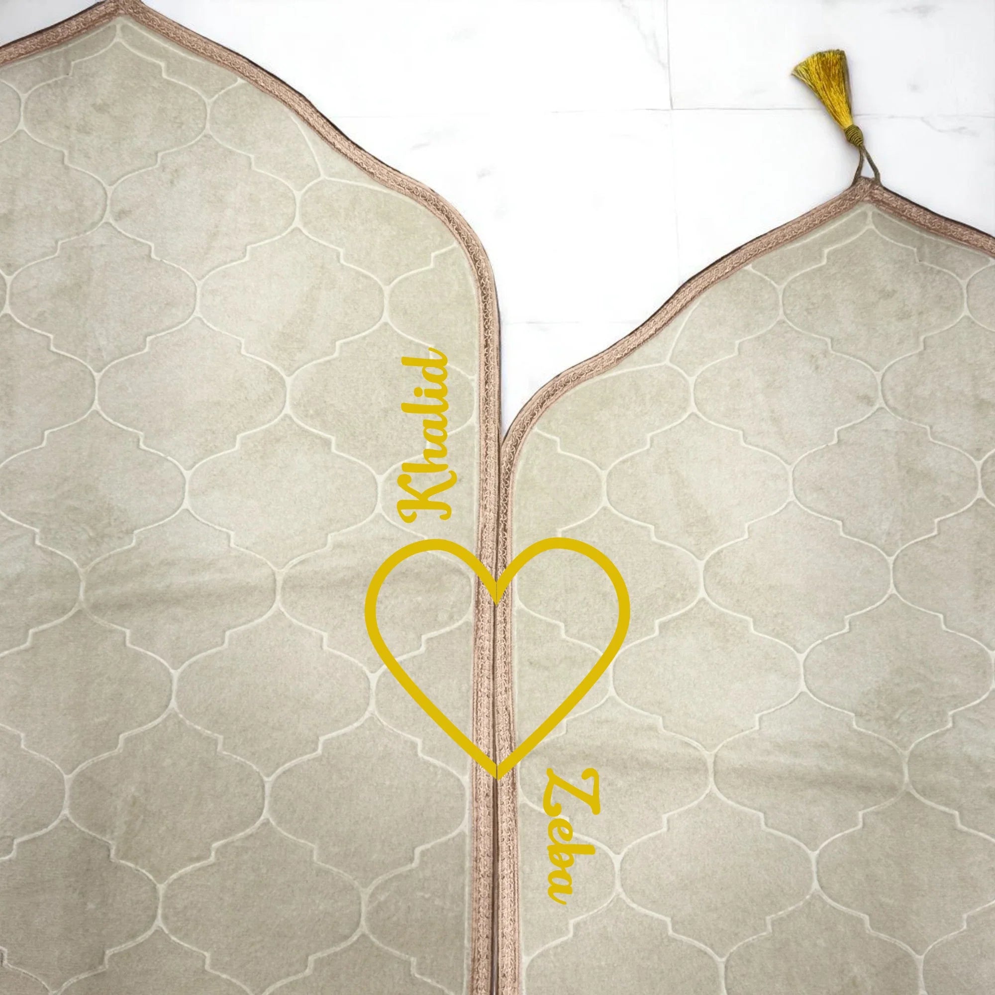 Celebrate togetherness in devotion with this beautifully crafted Couple Janamaz Set, perfect for gifting on Islamic occasions, weddings, or as a thoughtful gesture for loved ones. Each prayer mat in this set is designed with intricate patterns symbolizing faith and unity, offering comfort and elegance during prayers. Premium Quality, made from soft, durable fabric for a serene prayer experience. Gift-Ready, comes in a beautifully wrapped package, making it a meaningful Islamic gift.
