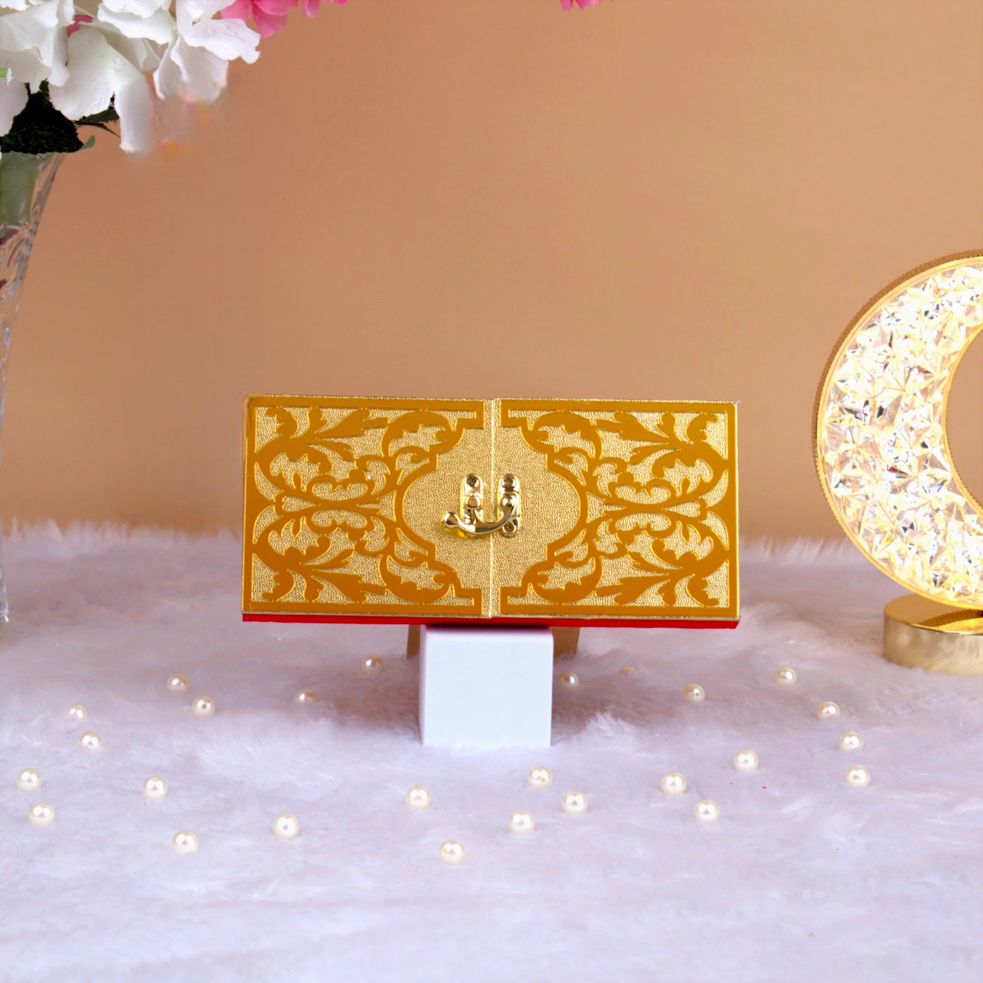 Celebrate Islamic traditions with the Personalised Golden Designer Meher Box, a luxurious gift that blends timeless elegance with meaningful personalization. Often used in Meher ceremonies, this exquisite box is designed to hold the sacred gift of Meher, symbolizing commitment and love in Muslim marriages. With a radiant golden finish, the box can be customized with names, or Islamic calligraphy, making it a unique and cherished keepsake.