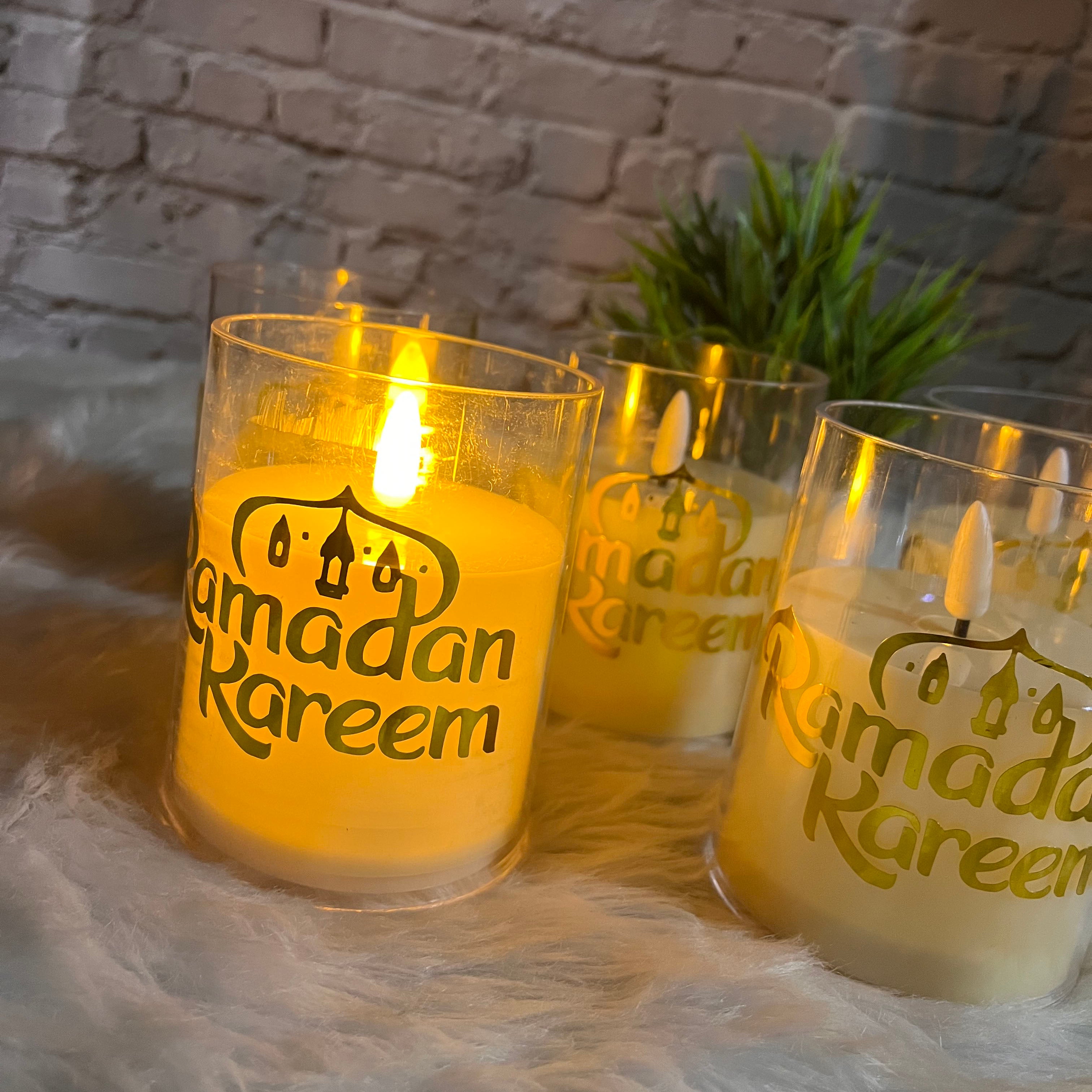 Celebrate the spirit of Ramadan and Eid with our beautifully crafted LED Candle, featuring "Ramadan Mubarak" or "Eid Mubarak" designs. Combining traditional charm with modern convenience, this candle creates a warm, flickering glow without the hassle of real flames. Perfect for Islamic gifting, it’s a thoughtful and elegant way to spread light, love, and blessings during the festive season.