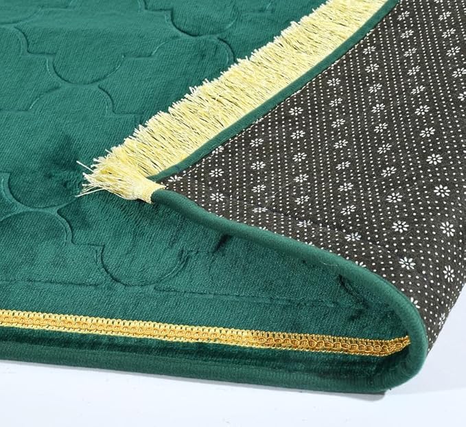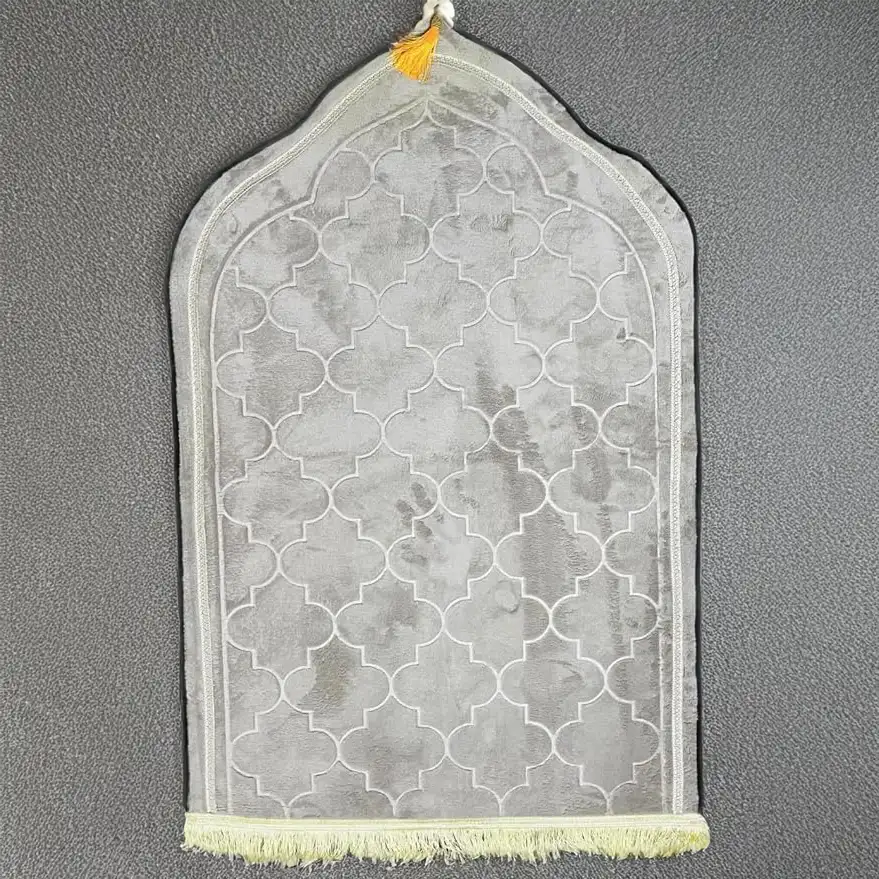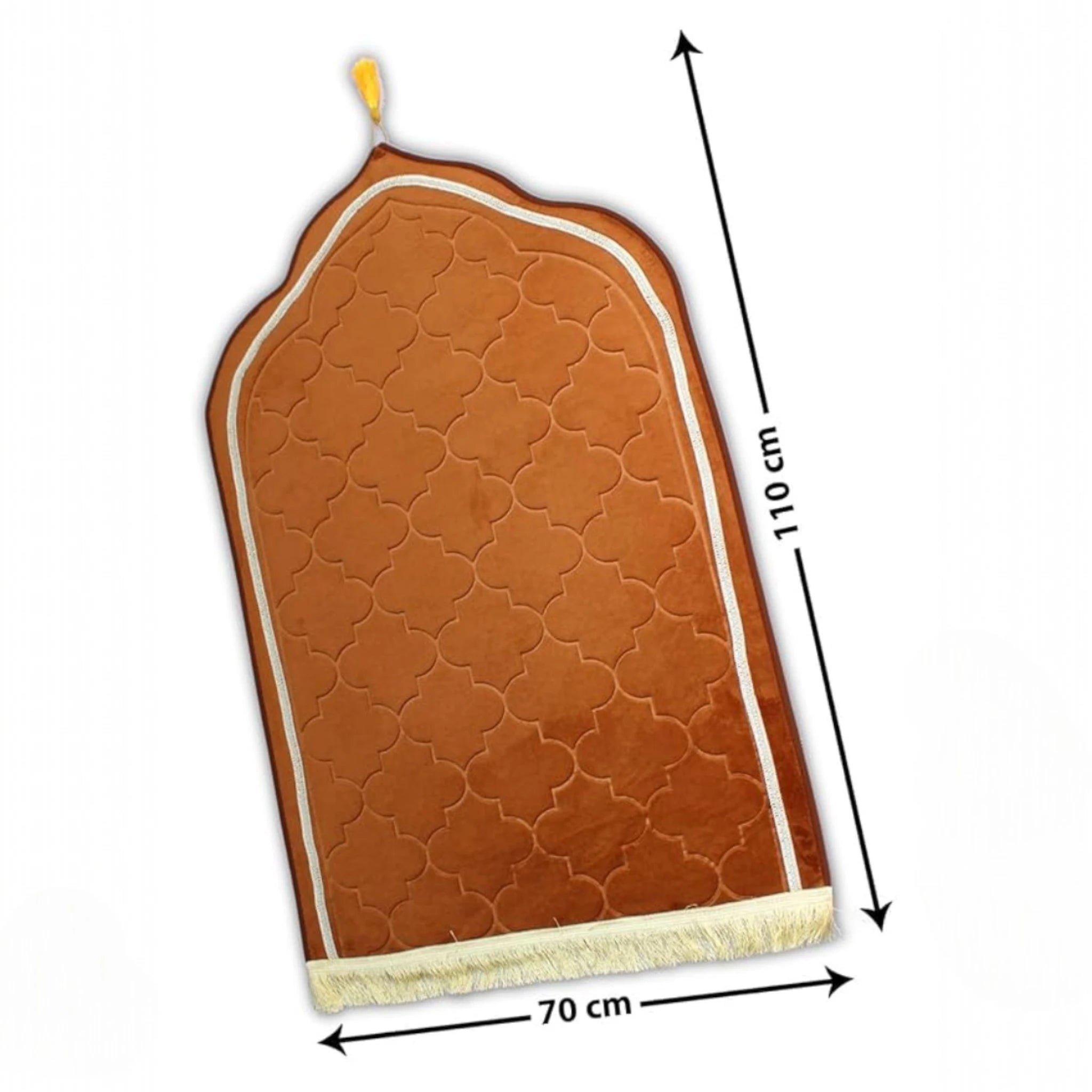 Introducing our exquisite collection of Customised Dome Prayer Rugs, a perfect blend of luxury and spirituality for your serene moments of prayer. Crafted with meticulous care and attention to detail, these prayer mats offer a plush and soft velvet experience, ensuring utmost comfort during your spiritual practices.