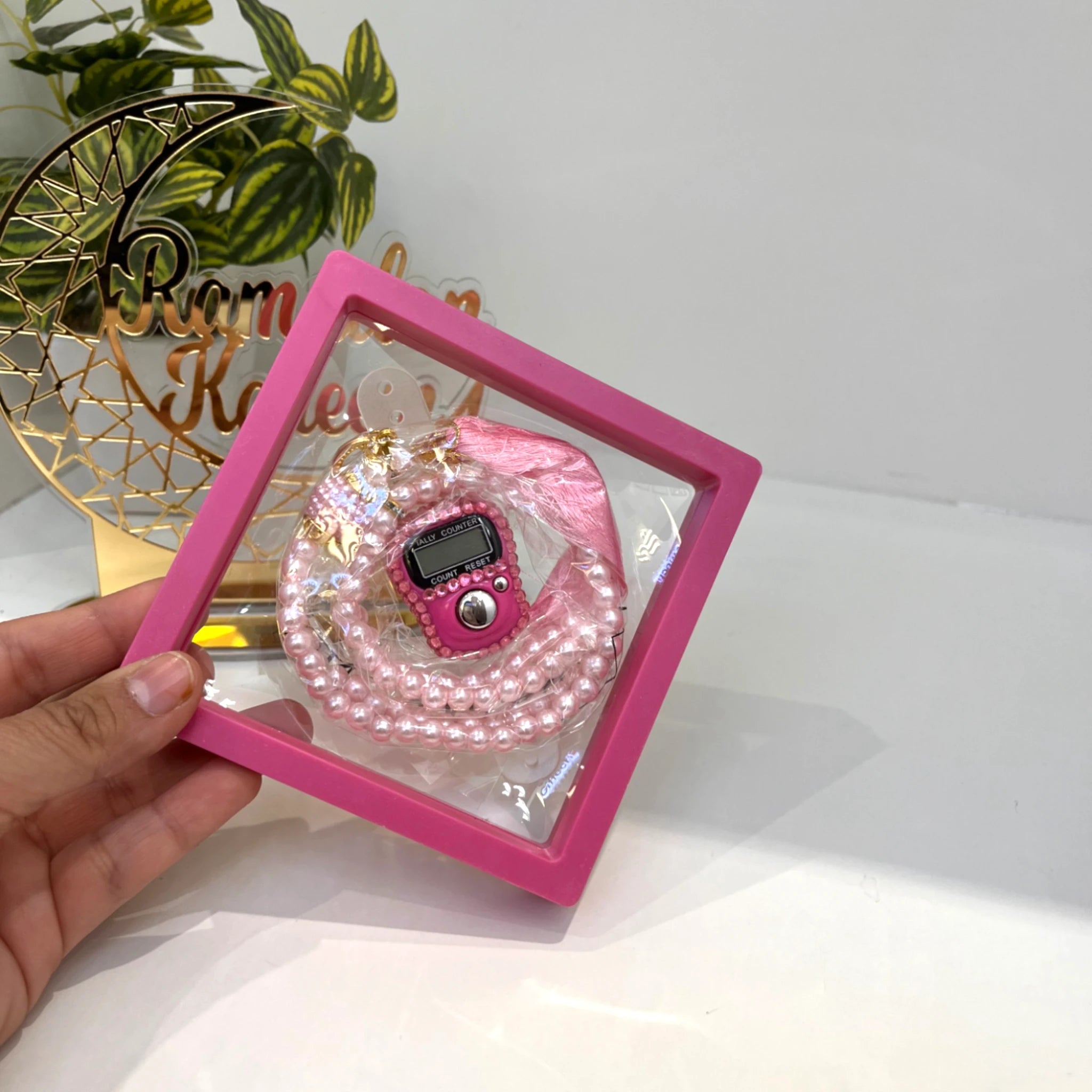 Enhance the beauty of remembrance with the Transparent Tasbeeh Combo, a perfect blend of tradition and modernity for Islamic gifting. This thoughtfully curated set includes: 100-Bead Pearl Tasbeeh, A timeless symbol of devotion, crafted with lustrous pearl-like beads for a graceful touch. Digital Tasbeeh Counter, A contemporary tool to make dhikr easy and convenient, ideal for busy lifestyles.