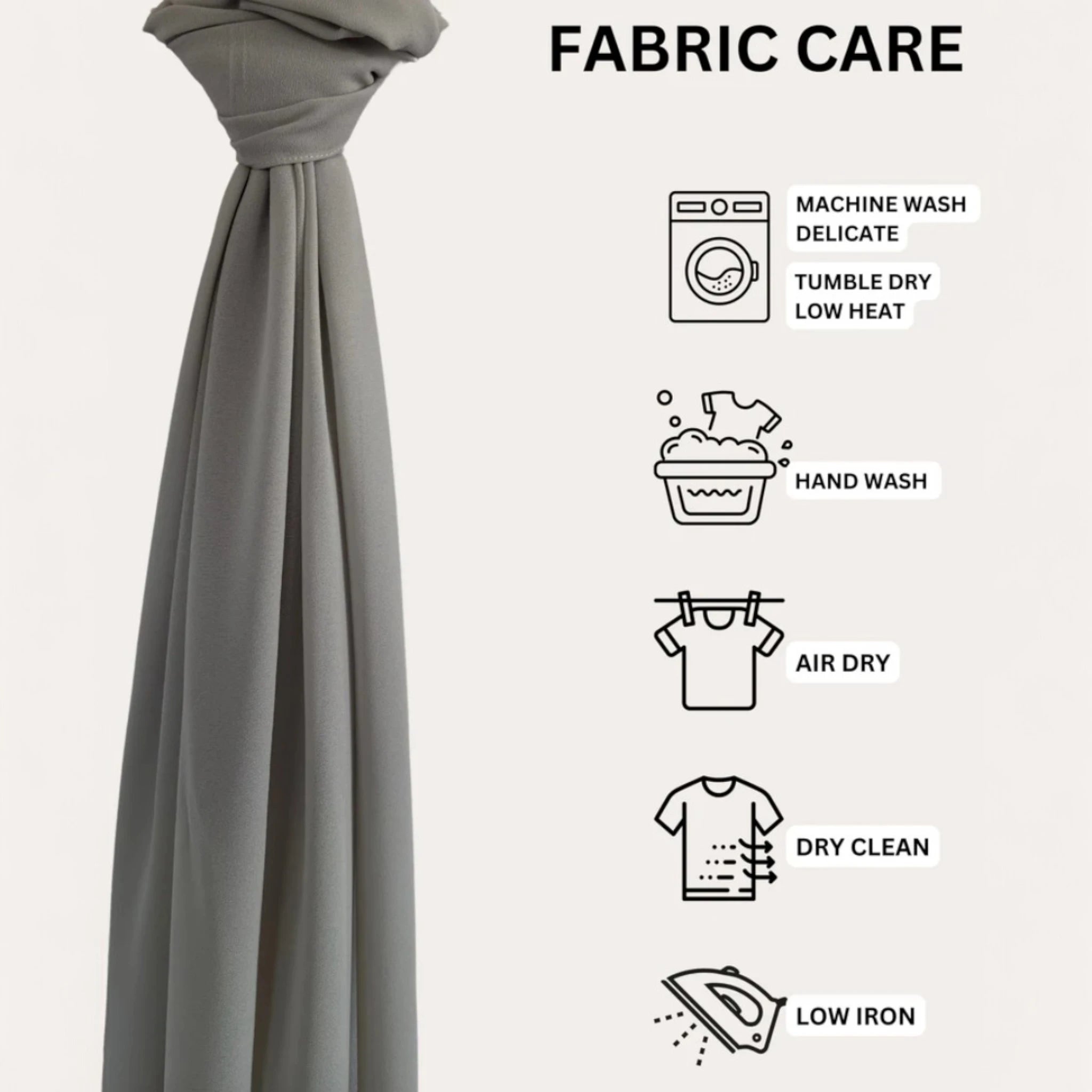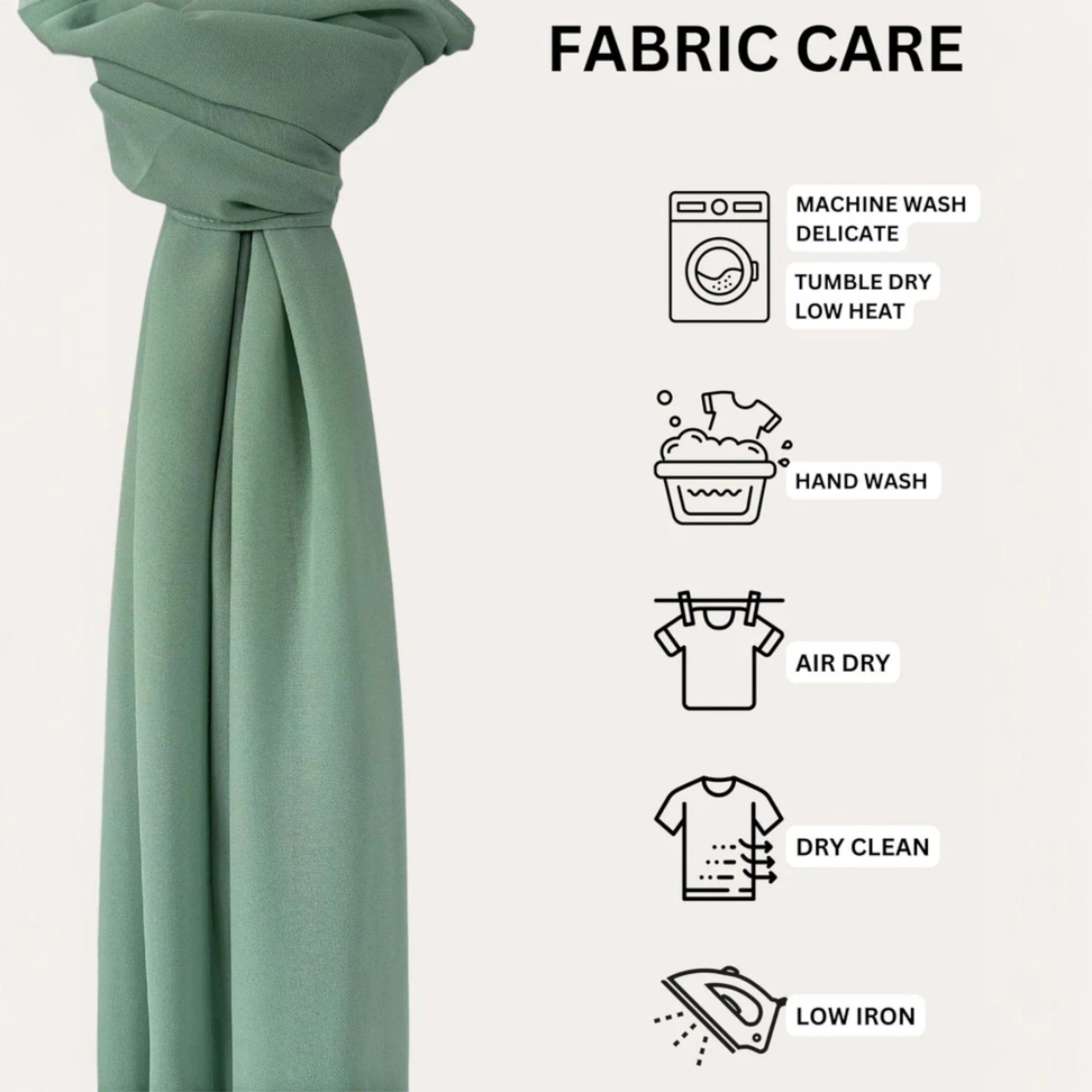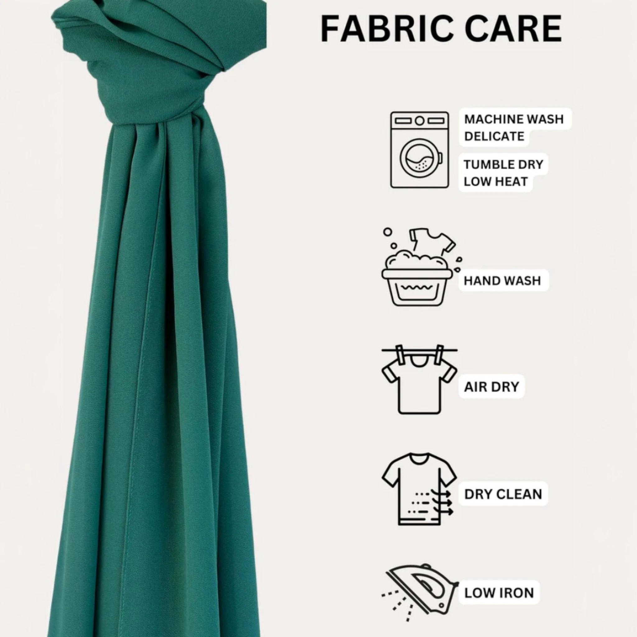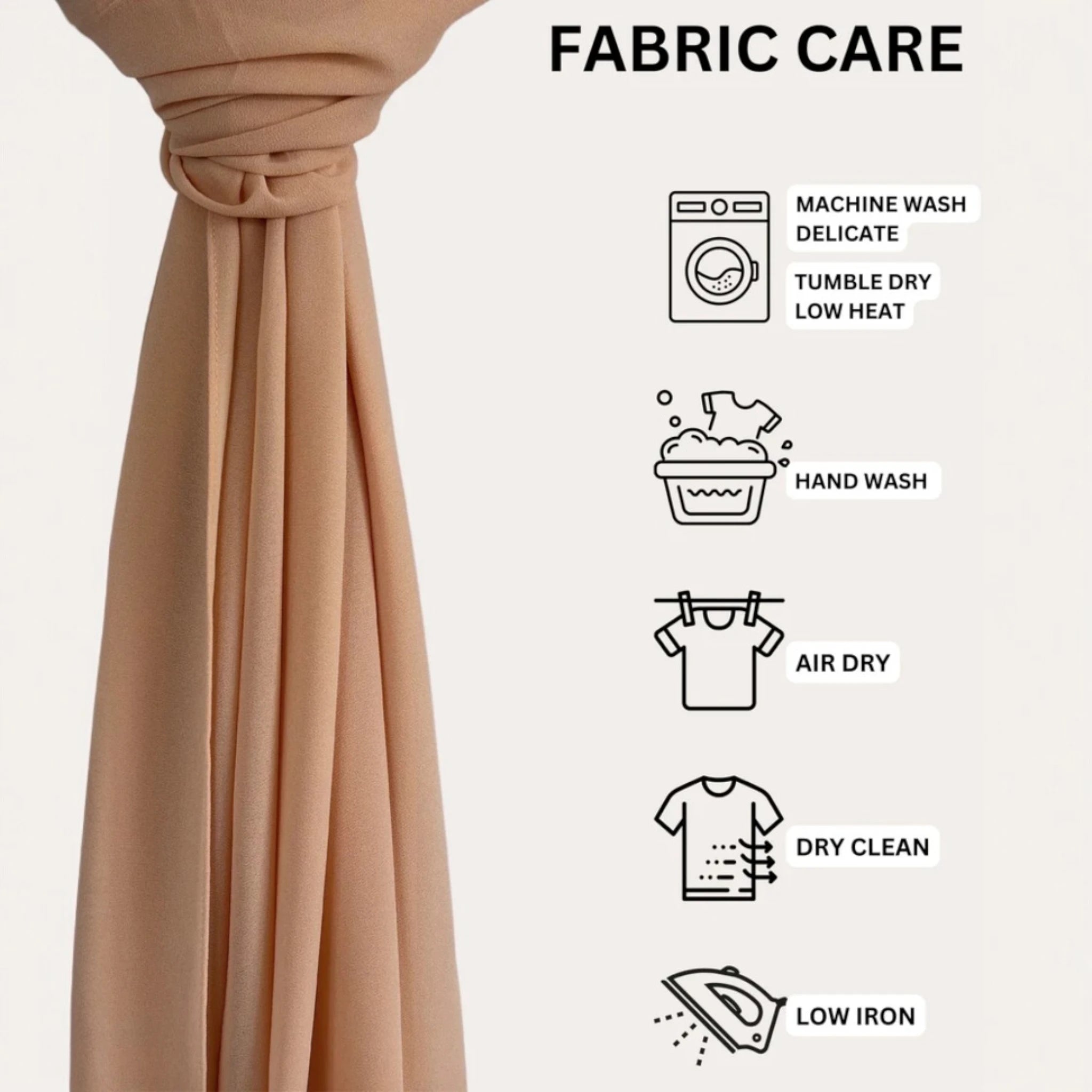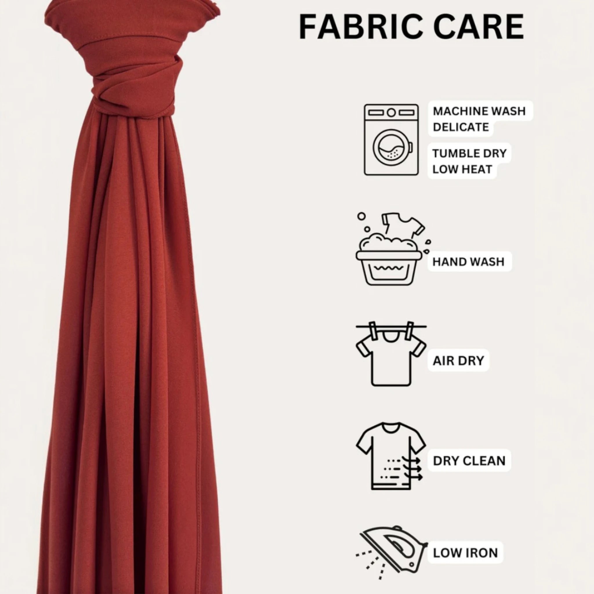 Hand wash/machine wash on delicate with a light detergent and in a cold water with only a like colors. Tumble dry on low or air dry, iron if needed. For stains use delicate fabric stain remover.
