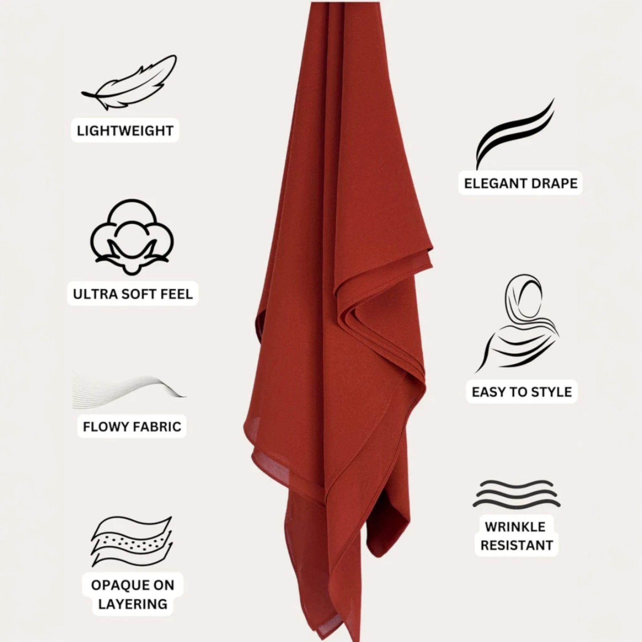 Our Premium Chiffon hijabs are crafted from an ultra-smooth, lightweight fabric, synonymous with elegance and luxury.