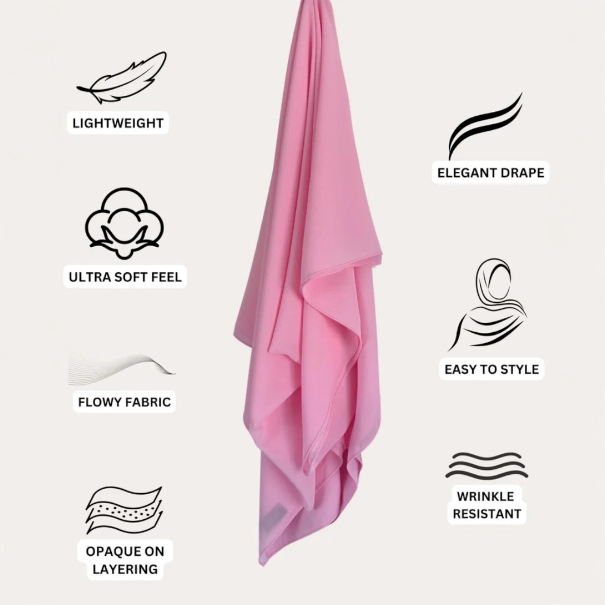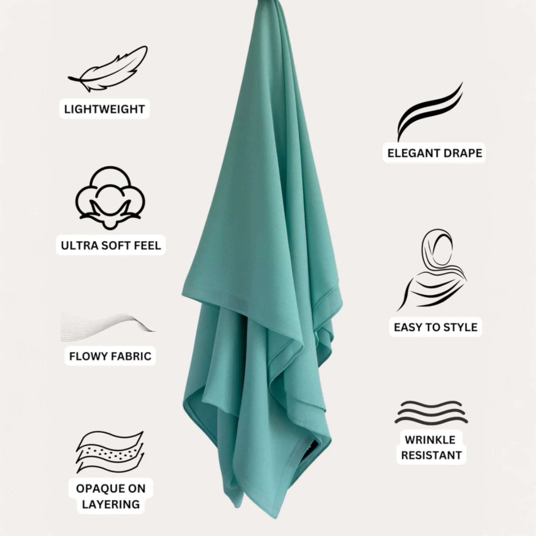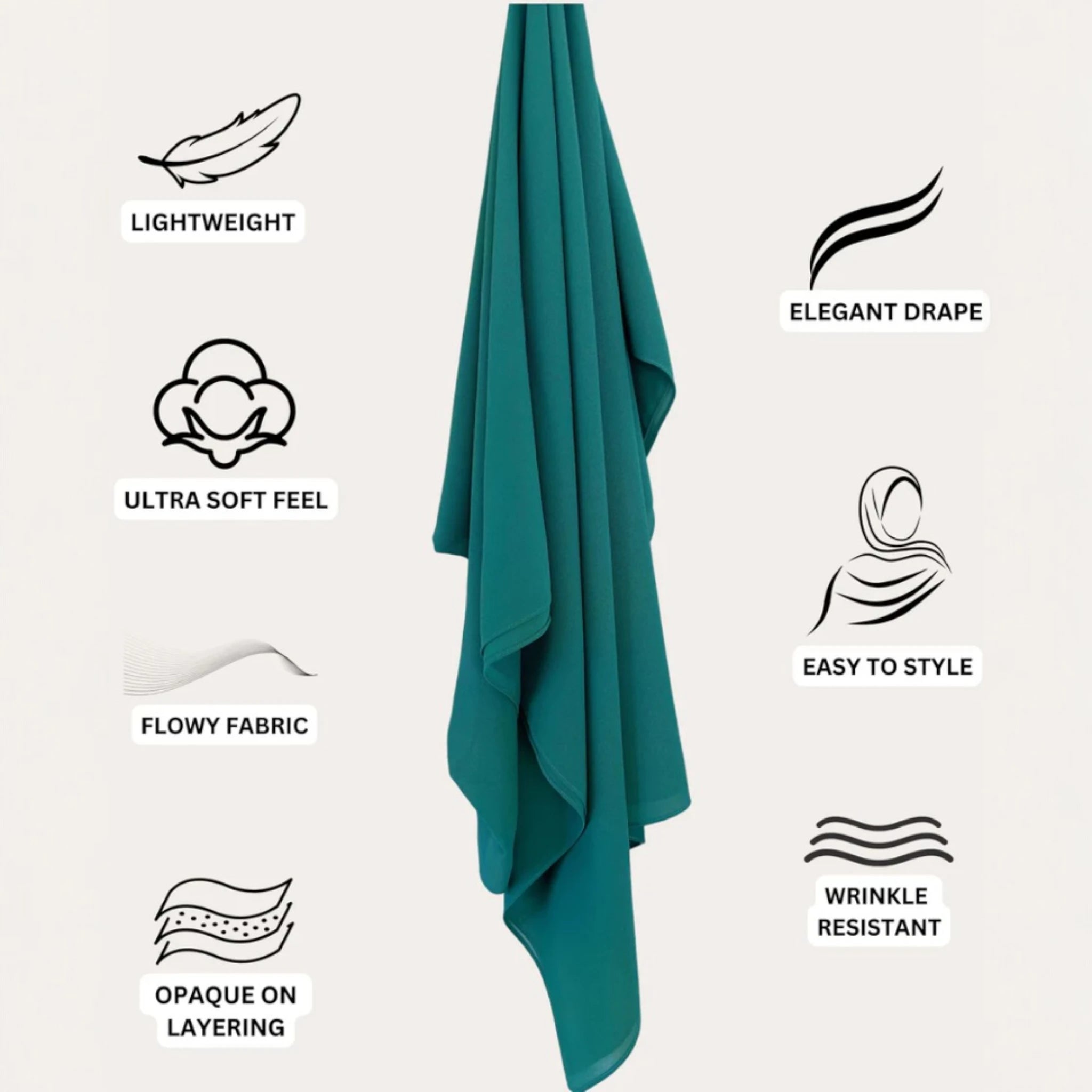 Featuring a soft, sheer texture with an opaque finish, these hijabs drape effortlessly while offering a slight stretch to complement your style. With ample length for versatile coverage and layering, they provide a secure, non-slip fit, making them the perfect choice for all-day comfort and sophistication.