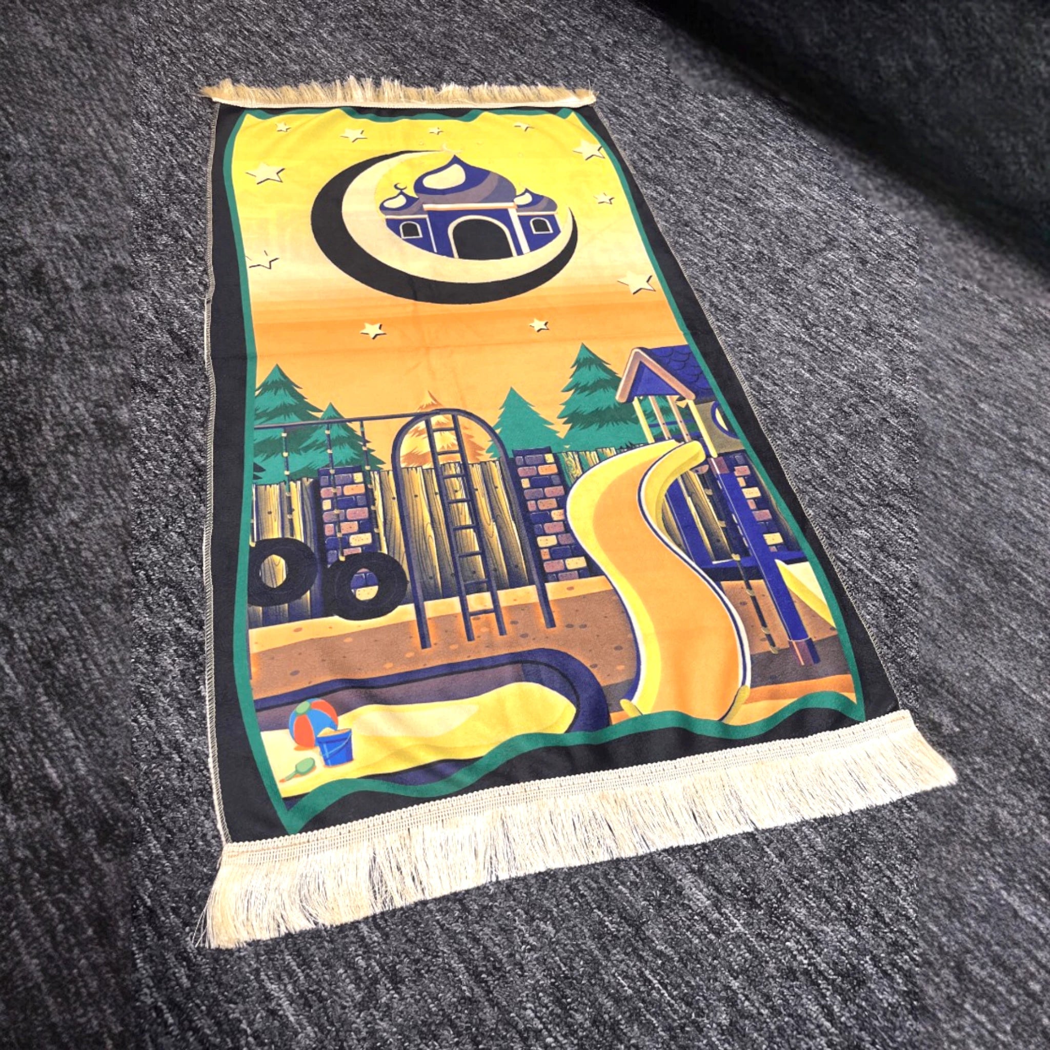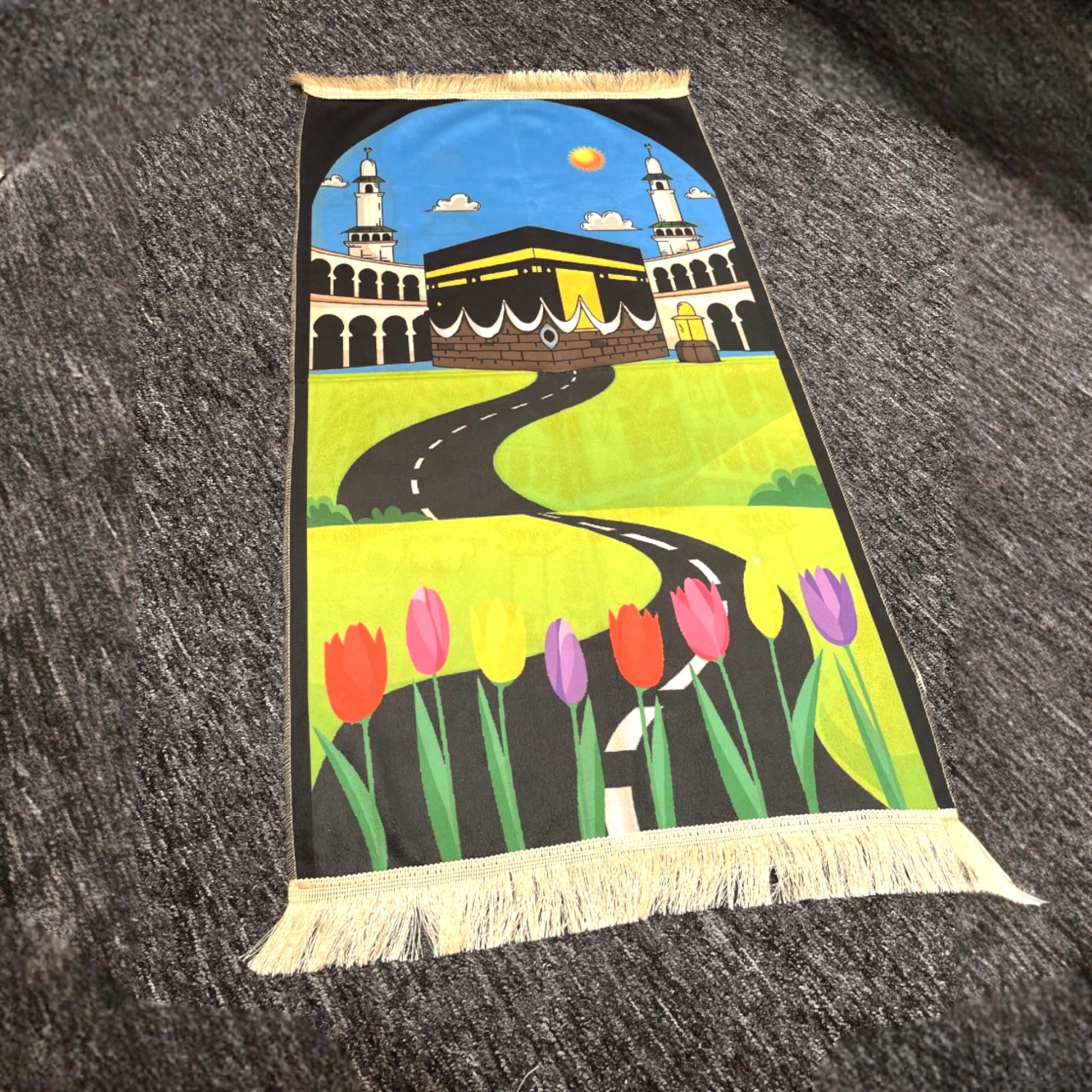Make prayer time special for your little one with our Personalized Kids' Prayer Rug, featuring beautiful Islamic designs, including the Kaaba, crescent moon, and stars. Especially crafted for boys and girls, this soft and comfortable prayer mat is designed to inspire young hearts towards faith.