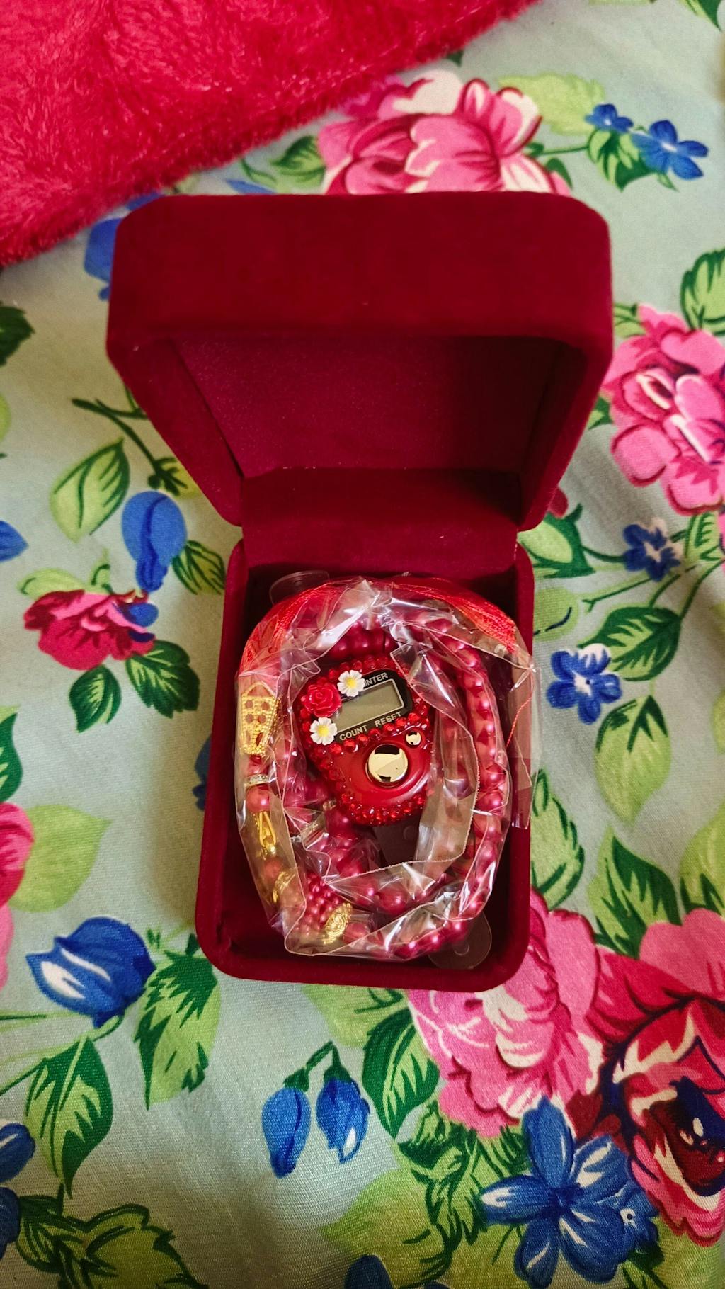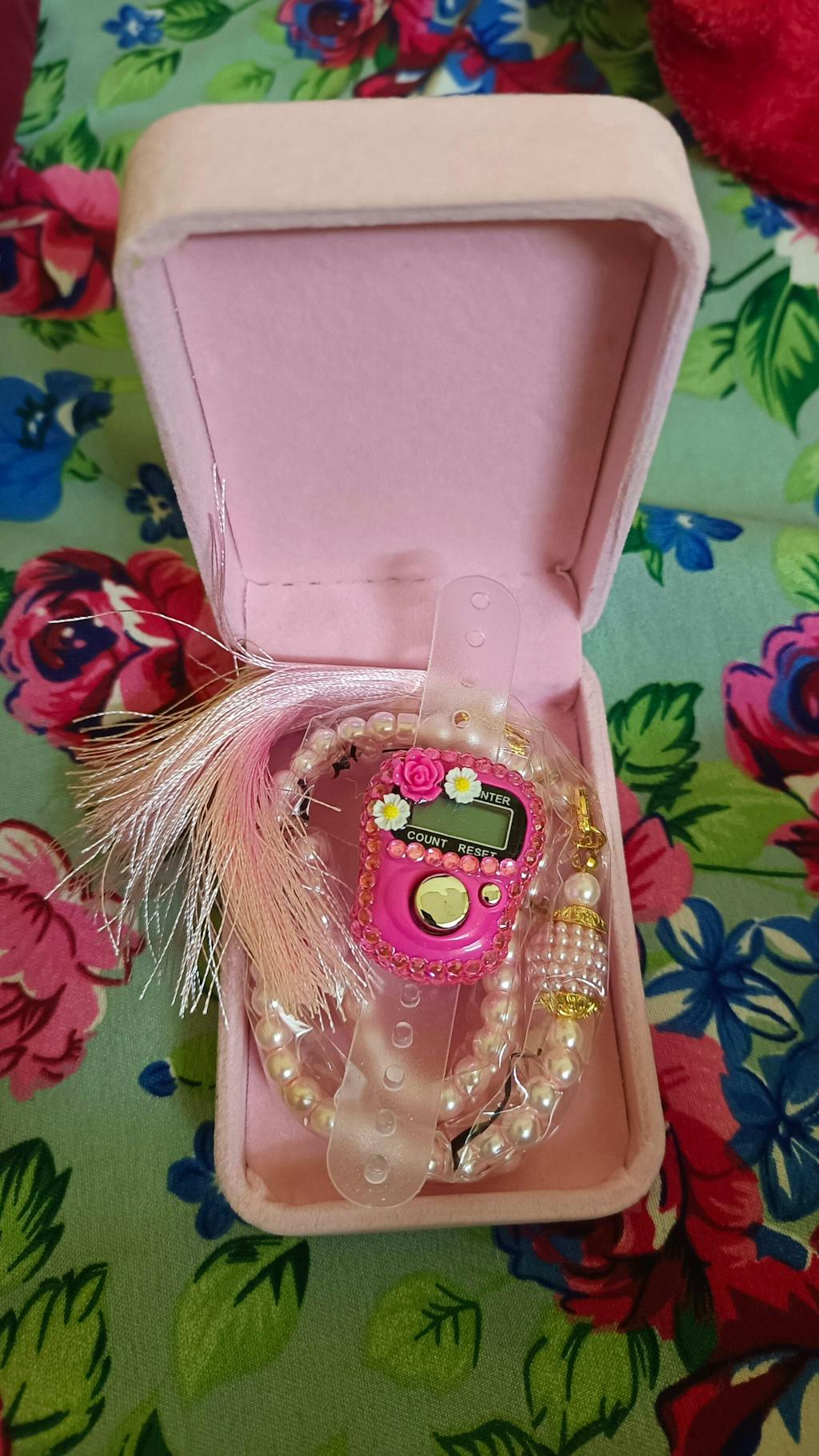 Enhance the beauty of remembrance with the Velvet Tasbeeh Combo, a perfect blend of tradition and modernity for Islamic gifting. This thoughtfully curated set includes: 100-Bead Pearl Tasbeeh, A timeless symbol of devotion, crafted with lustrous pearl-like beads for a graceful touch. Digital Tasbeeh Counter, A contemporary tool to make dhikr easy and convenient, ideal for busy lifestyles. A luxurious velvet box to keep the tasbeeh safe and organized, adding an elegant finishing touch.