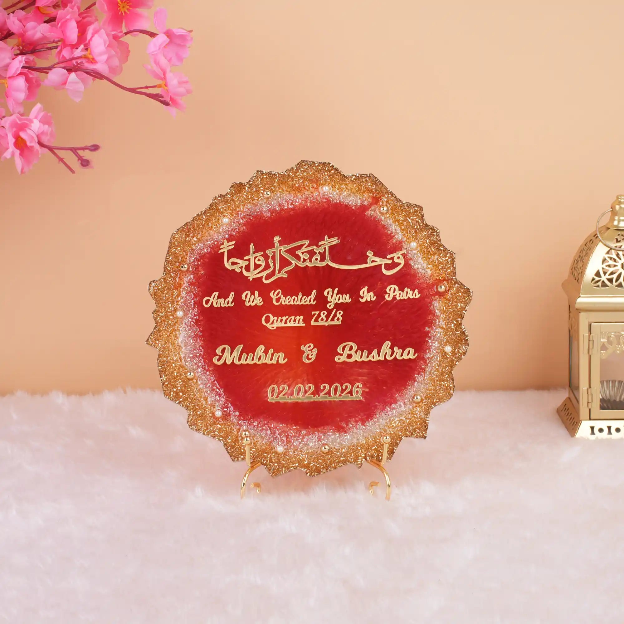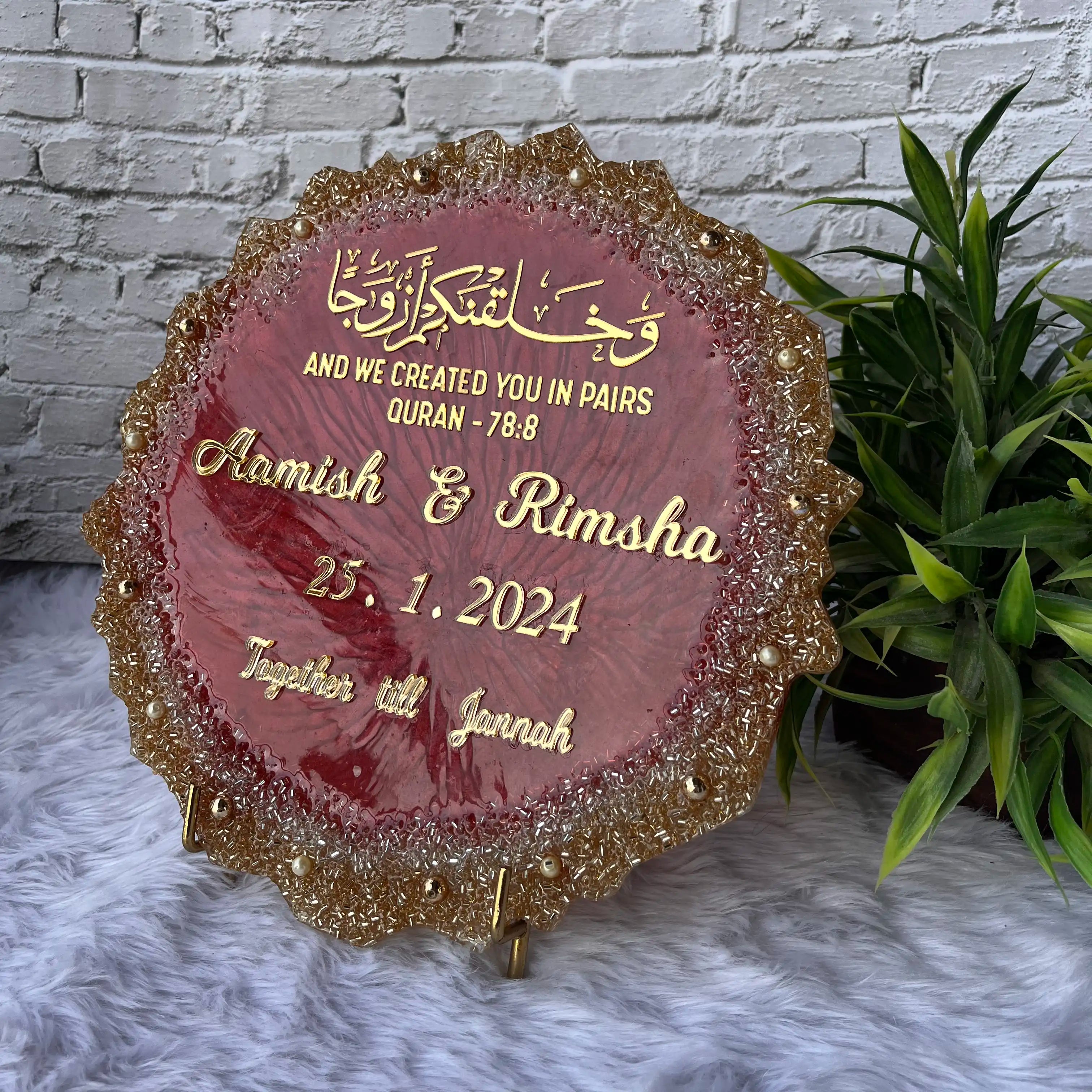 Celebrate love and togetherness with our Resin Art Couple Frames, a unique and elegant gift for couples that beautifully captures cherished memories. Handcrafted with precision and care, each frame is made using exquisite resin art, blending vibrant colors and intricate designs to create a stunning keepsake. Perfect for Islamic occasions like weddings, anniversaries, or special moments, these frames can be customized with names, dates, or a special message to make it truly personal. Available for customization on our website, the Resin Art Couple Frames are not just a piece of décor, but a heartfelt symbol of love, faith, and the bond between two souls.