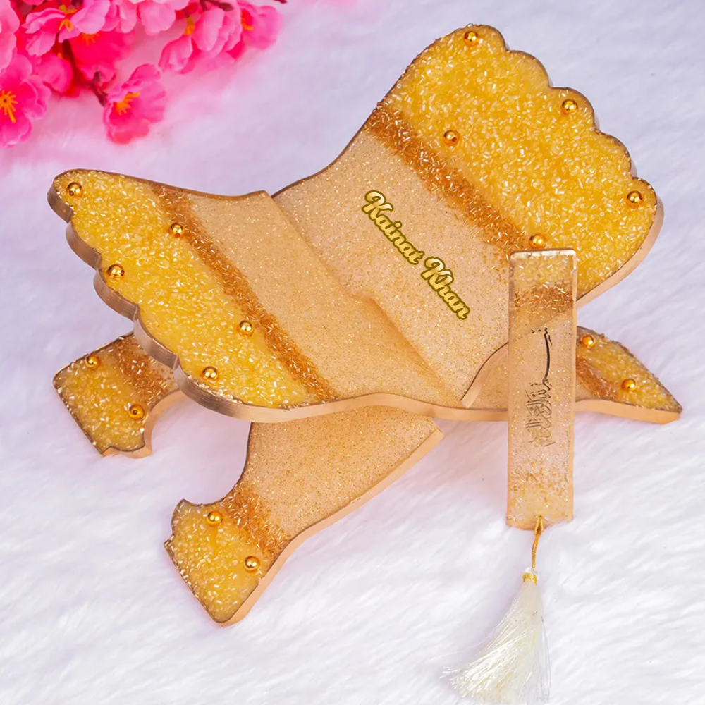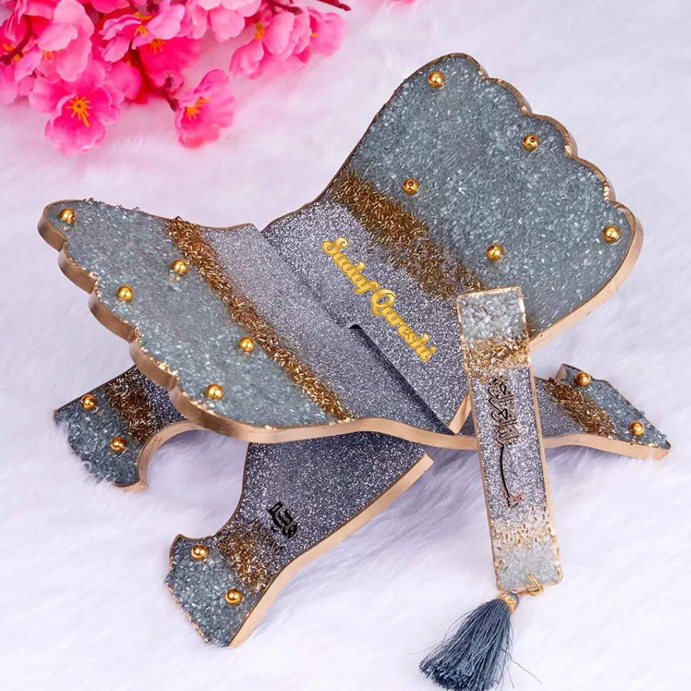 Enhance the sacred experience of Quran recitation with our exquisitely handcrafted Rihal Quran Stand, thoughtfully paired with a beautiful bookmark. Skillfully carved by artisans, this resin stand combines timeless craftsmanship with elegance, making it an ideal gift for Islamic occasions. Its foldable design offers convenience, while the intricate patterns reflect deep reverence for the Holy Quran. The included bookmark ensures ease of use, allowing you to seamlessly return to your place in the text. Whether for personal devotion or as a meaningful gift, this set brings grace and devotion to every recitation. A cherished keepsake for generations.