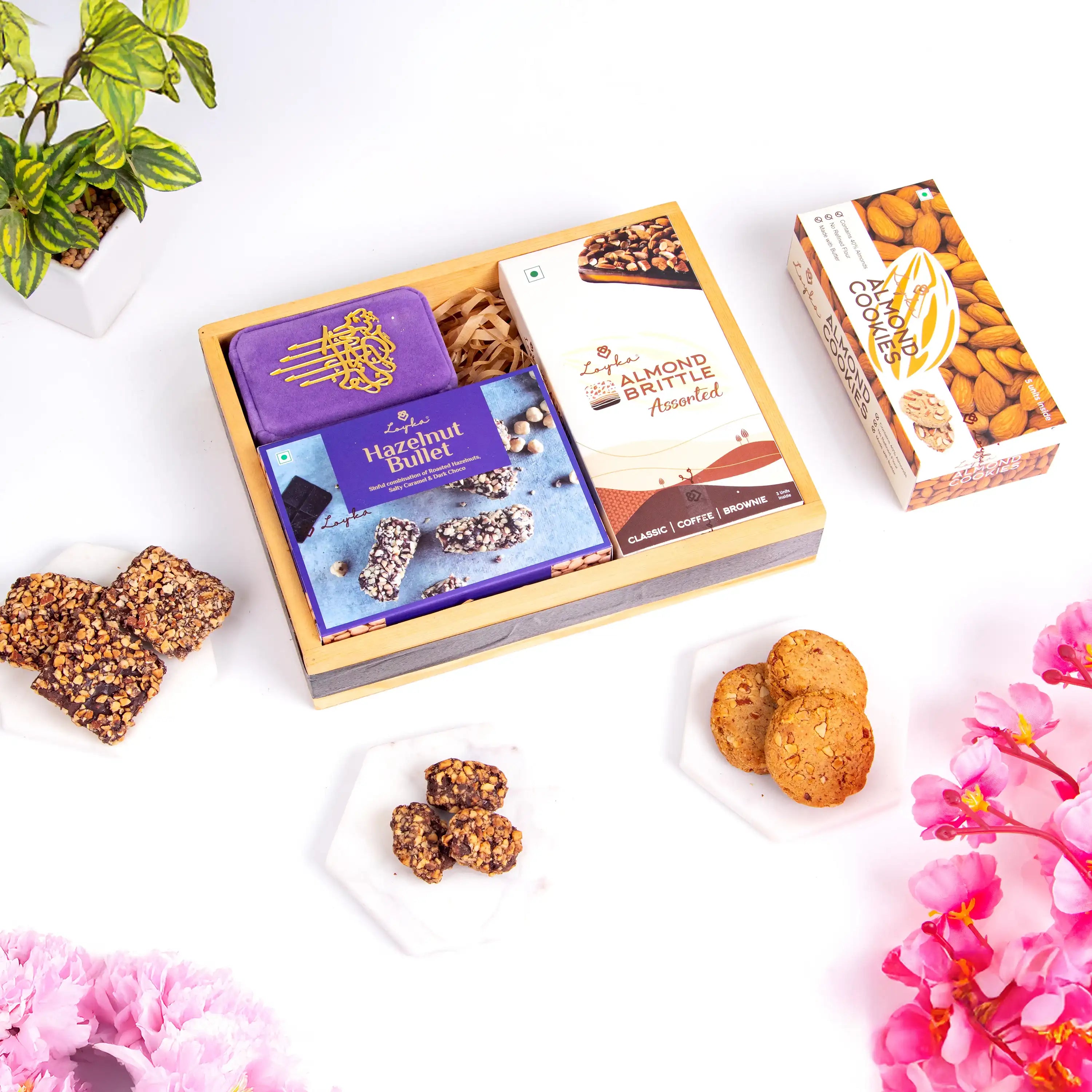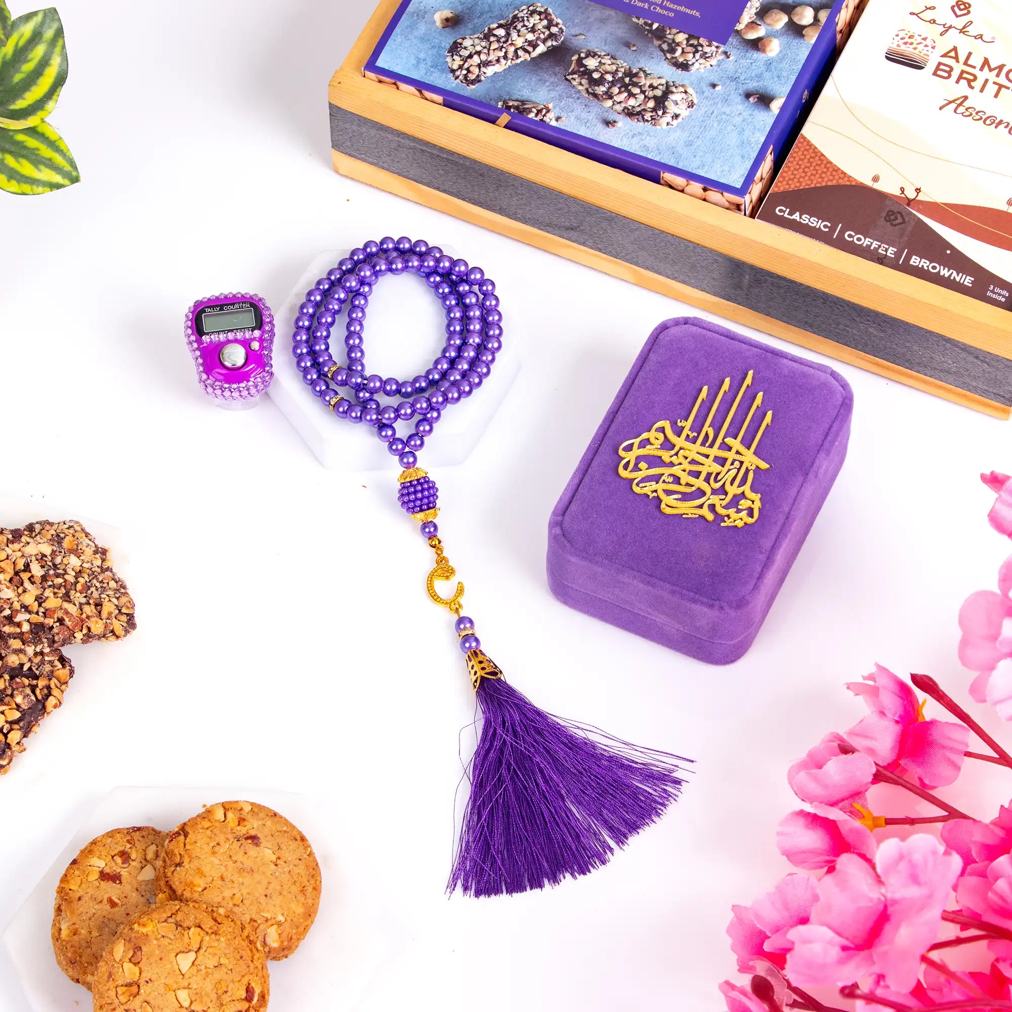 Immerse in the luxury of gifting with the Velvet Bliss & Nut Gourmet Delights Hamper, a perfect blend of sophistication and indulgence. Encased in an exquisite velvet box, this gourmet collection boasts a selection of premium nuts, meticulously chosen to offer a rich and wholesome experience. Ideal for Islamic gifting on occasions like Ramadan, Eid, or as a gesture of goodwill, this hamper reflects the spirit of generosity and sharing. Elevate your gifting experience with a touch of opulence and thoughtfulness, symbolizing nourishment for both the heart and soul.