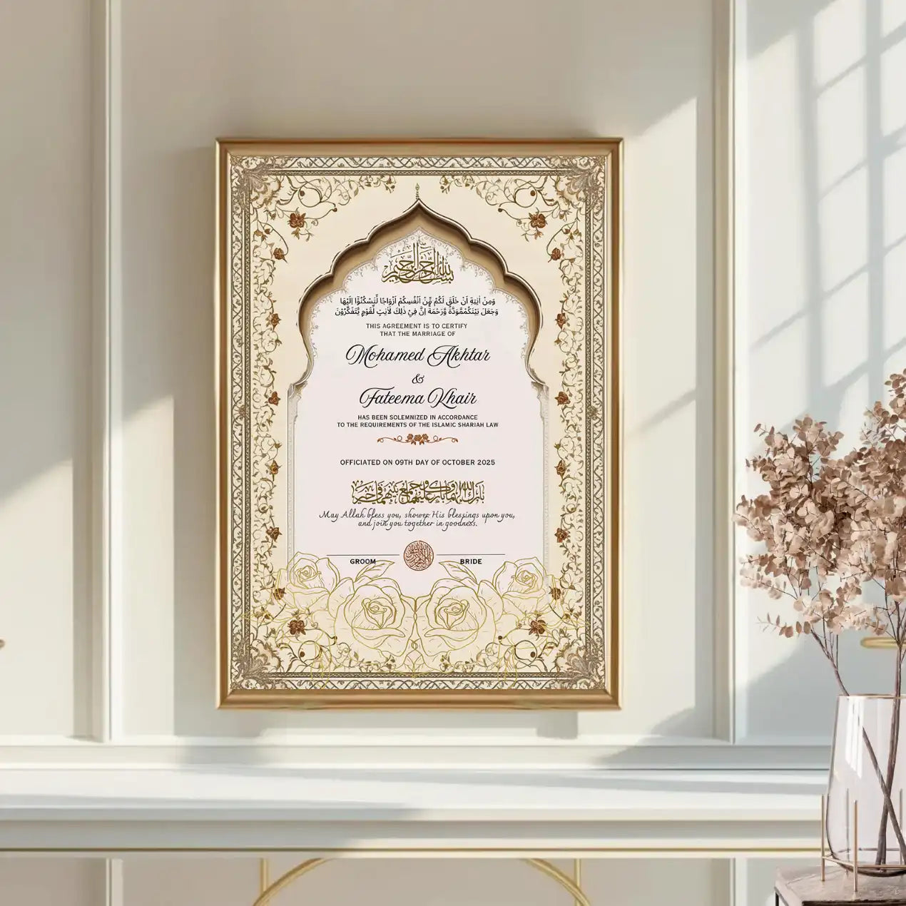 Perfect as an Islamic Nikah or wedding gift, this Nikah Nama transforms a sacred document into a piece of art. It stands as a meaningful keepsake, celebrating faith, love, and blessings that endure through generations.